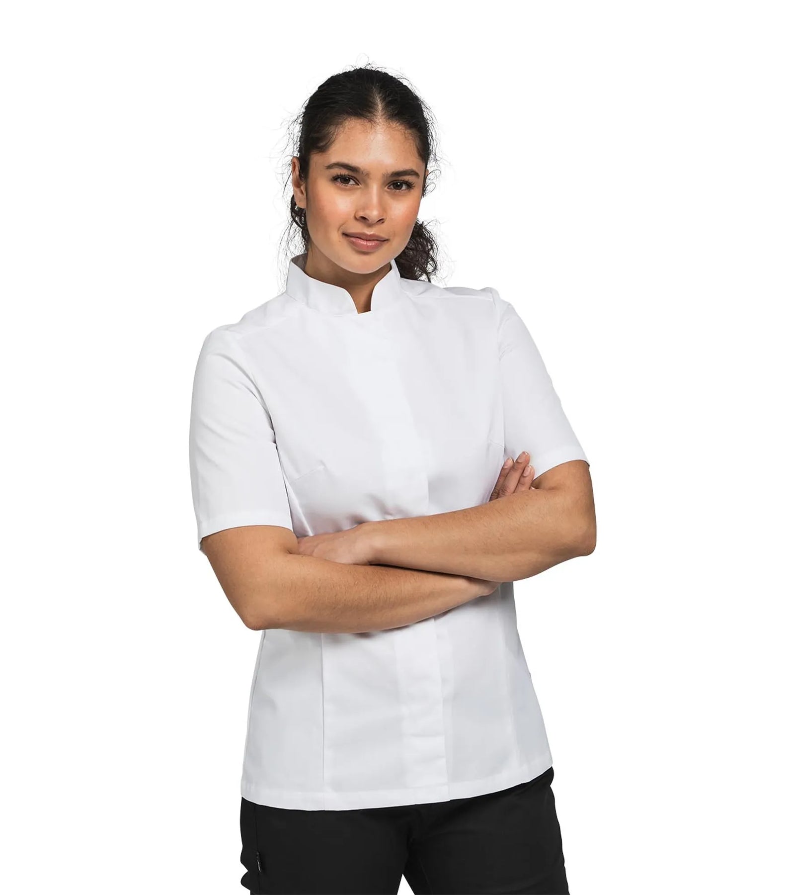 Moderne koksbuis voor dames met korte mouw en iets smallere pasvorm
