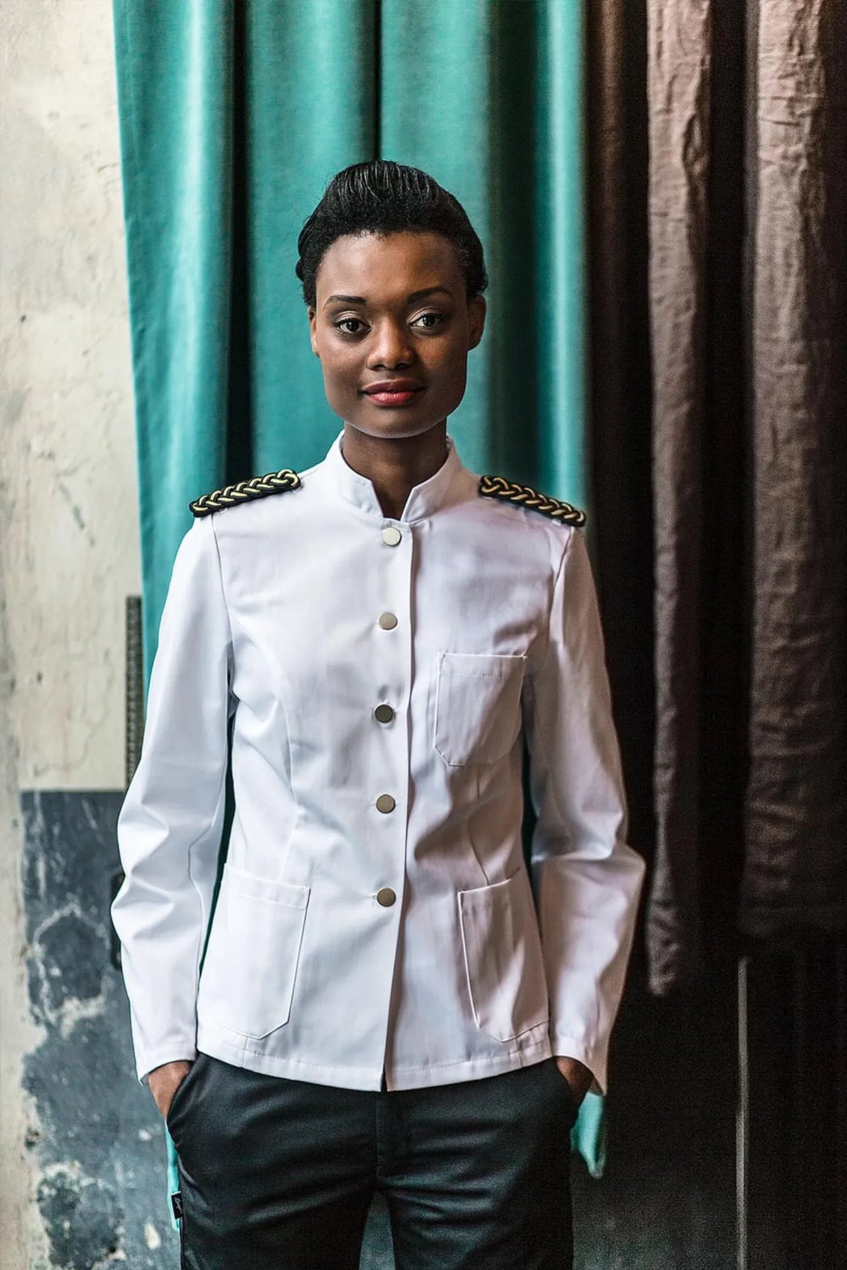 Bedieningsjas met opstaande kraag en steekzakken voor dames