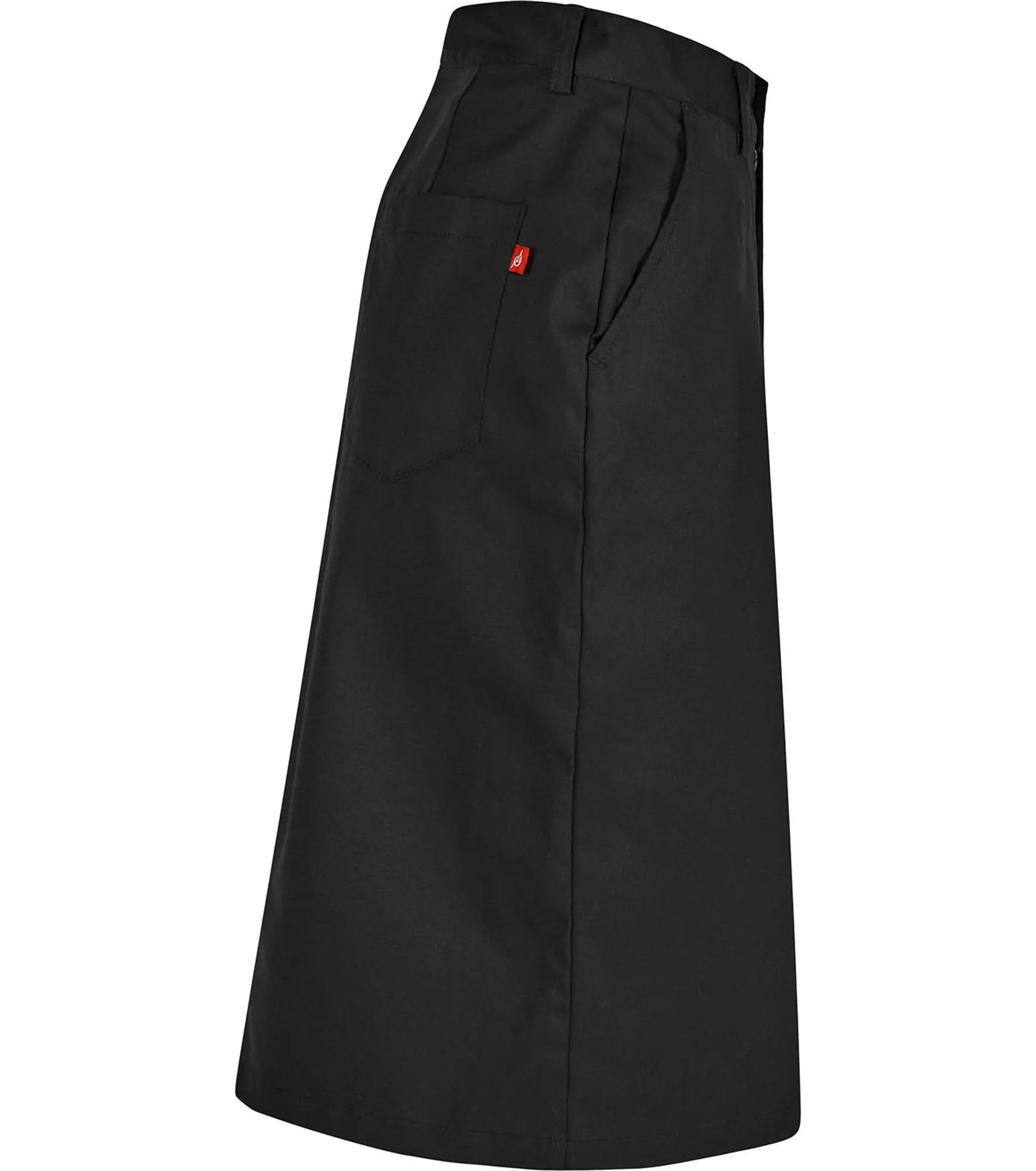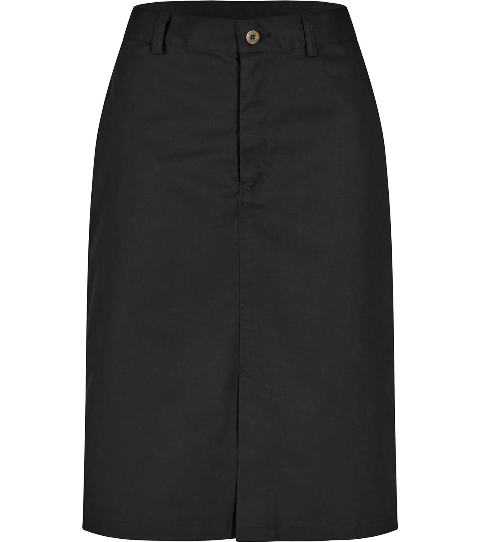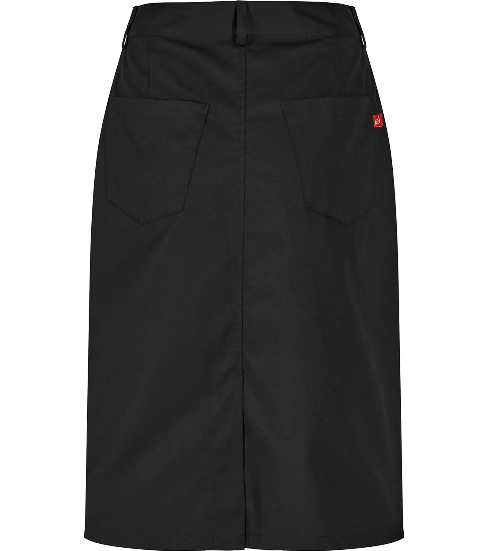 Kokerrok met normale pasvorm. De rok heeft een lengte tot net onder de knie.