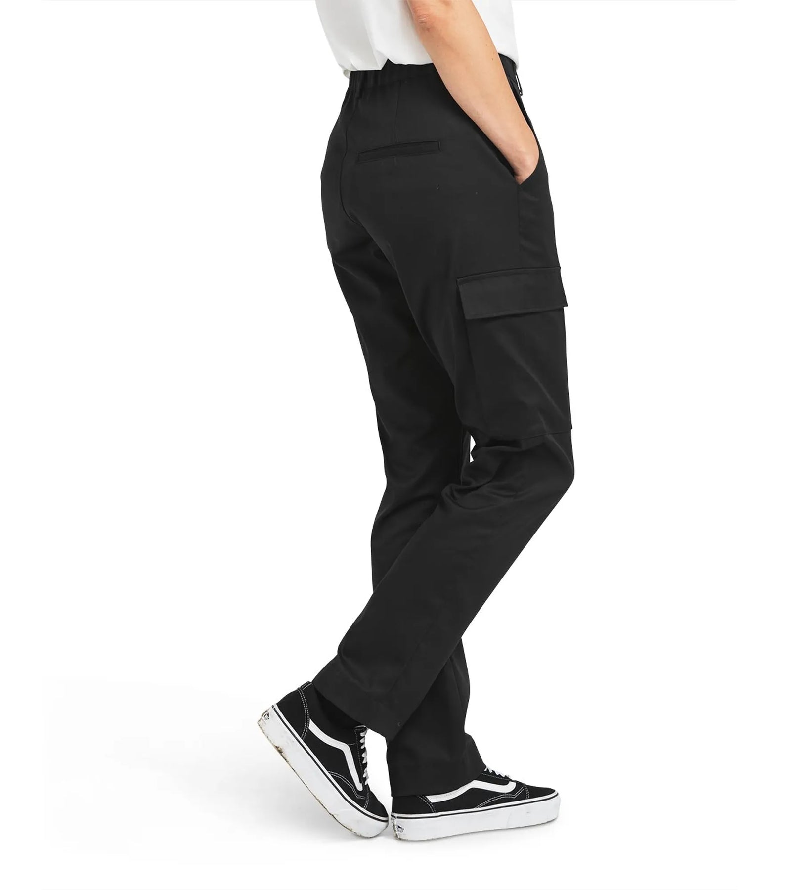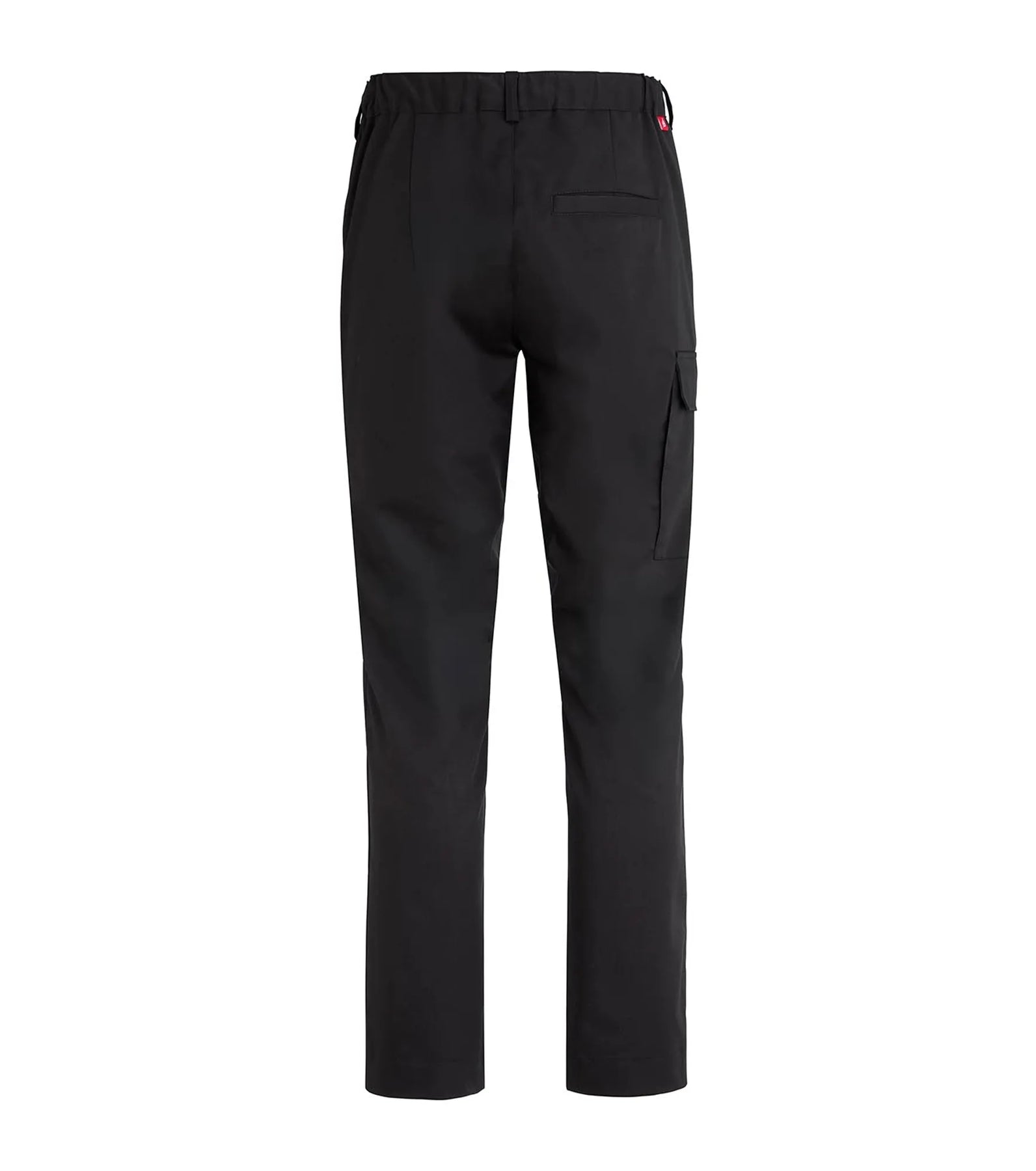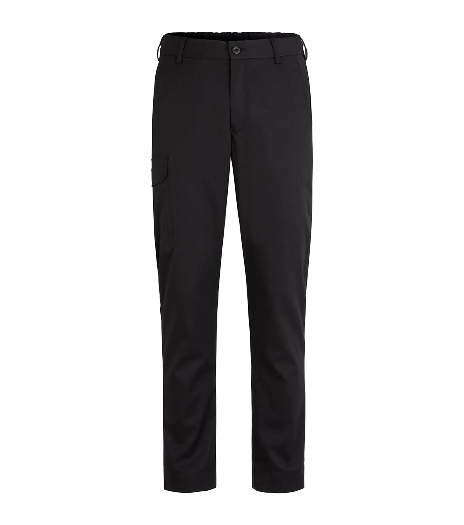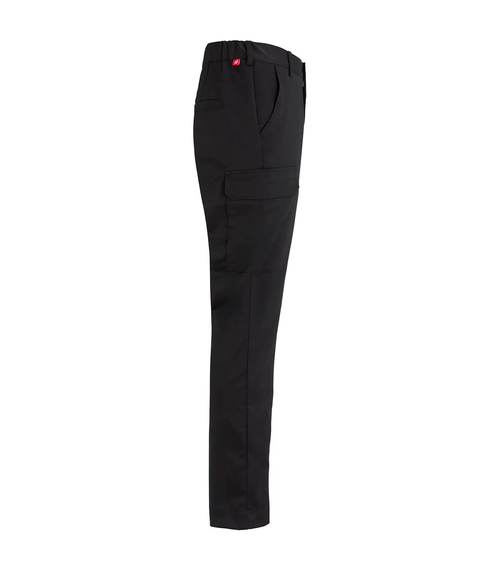 Chino in uniseks model met beenzak. Stretch stof en een elastische tailleband aan de achterkant voor een betere pasvorm. Praktische steekzakken, achterzak en beenzak met flap. De zoom in de broekspijpen kan eenvoudig worden versteld naar een langere lengte.