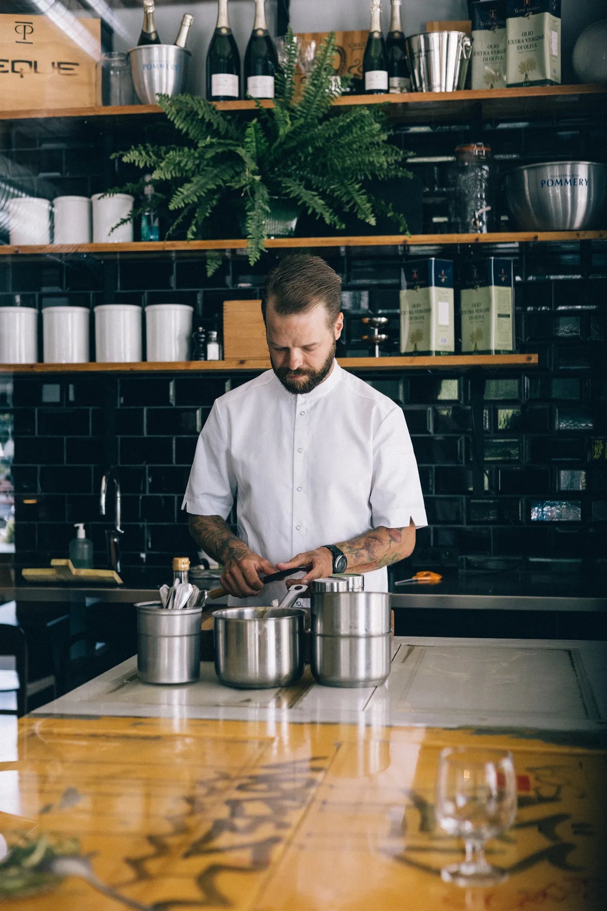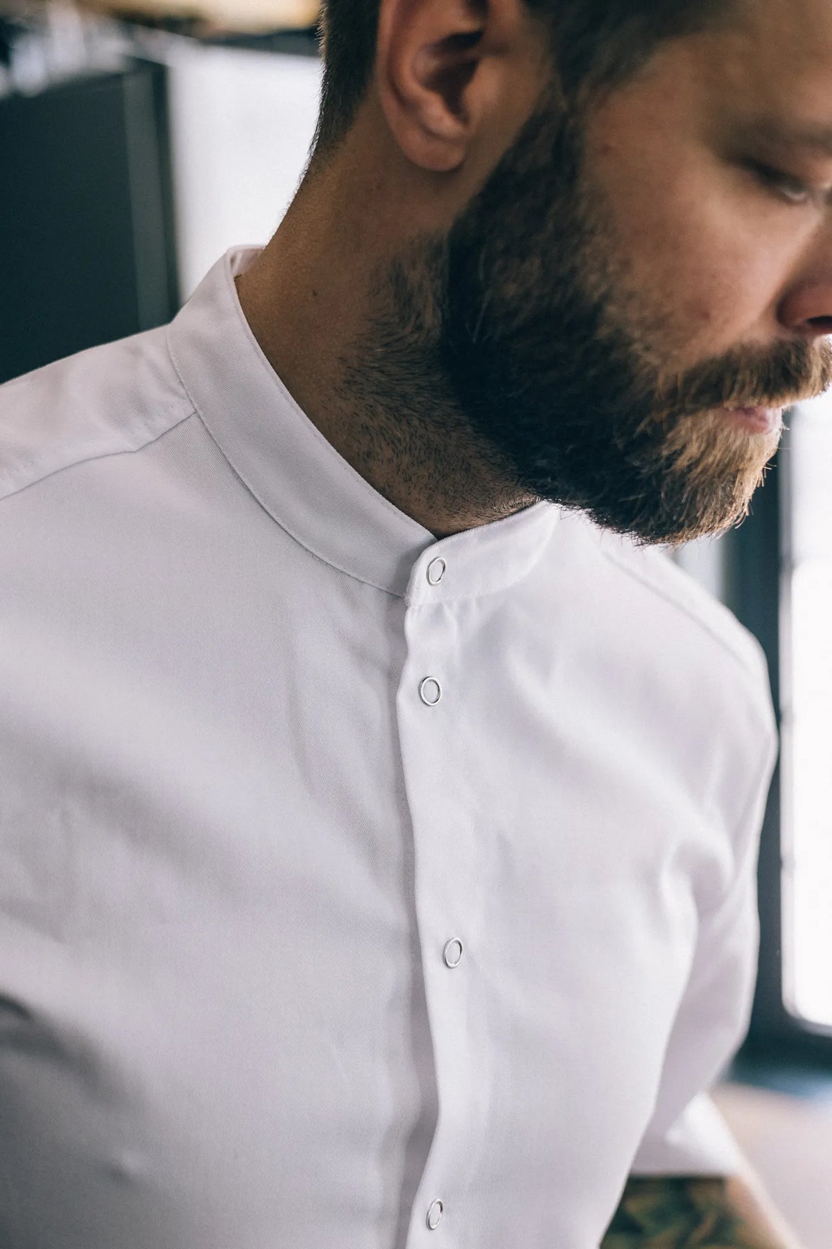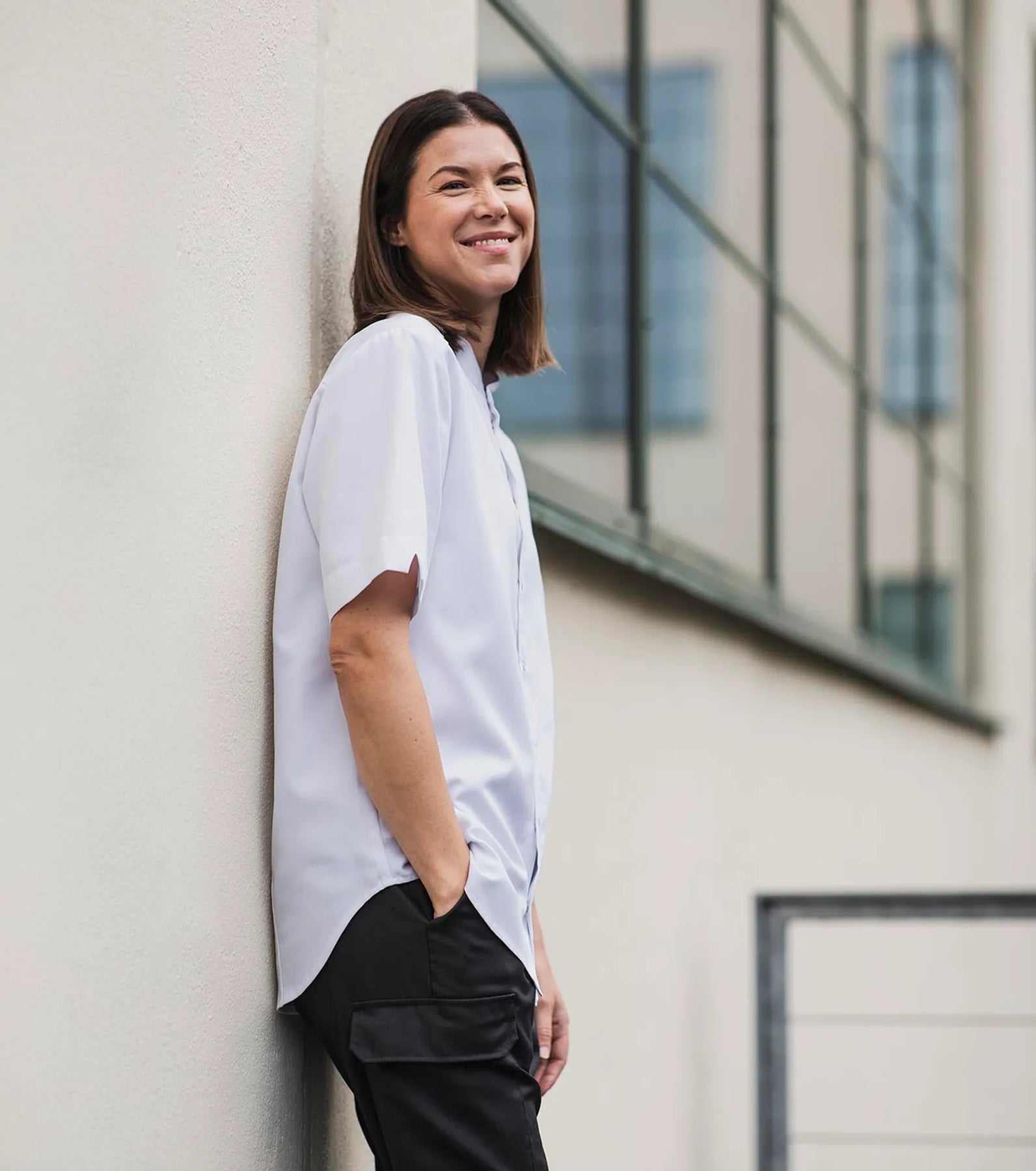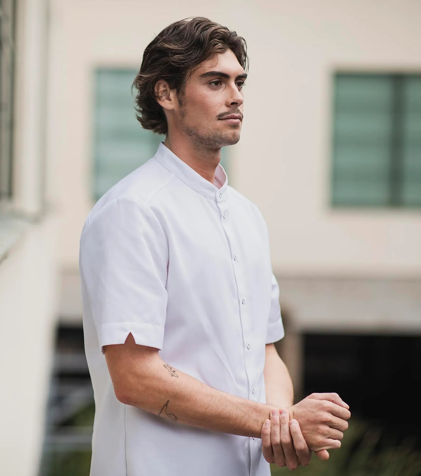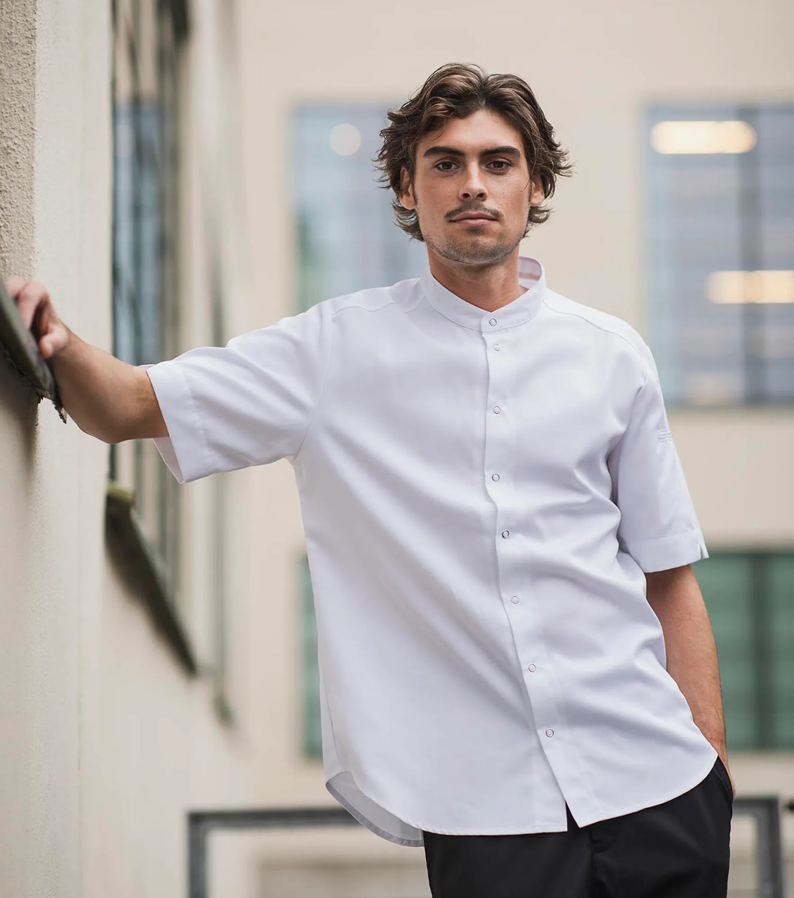 Een net hybride shirt die net zo geschikt is in de keuken als in de bediening.