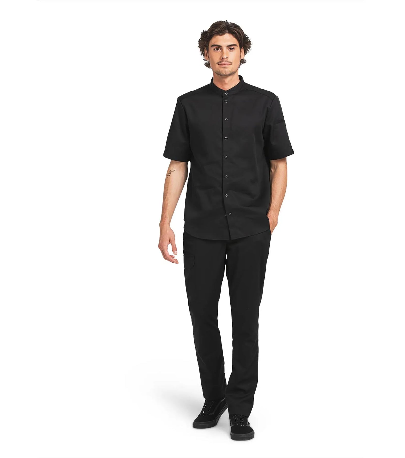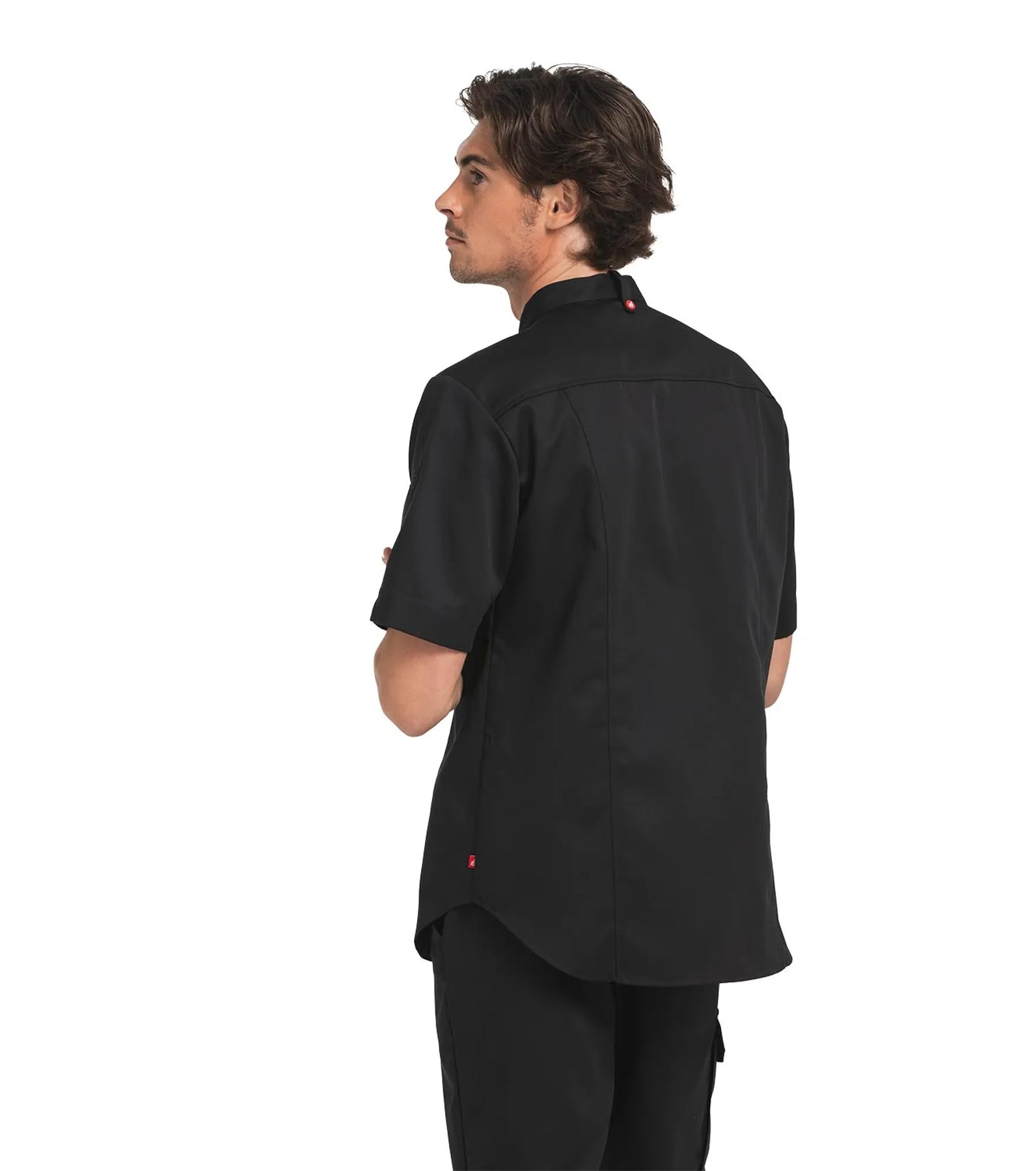 Een net hybride hemd dat zowel in de keuken als in de bediening gedragen kan worden. Pennenzakje op de mouw. Schortlus in de nek. Uniseks-pasvorm met afgerond onderlangs en langere achterkant.