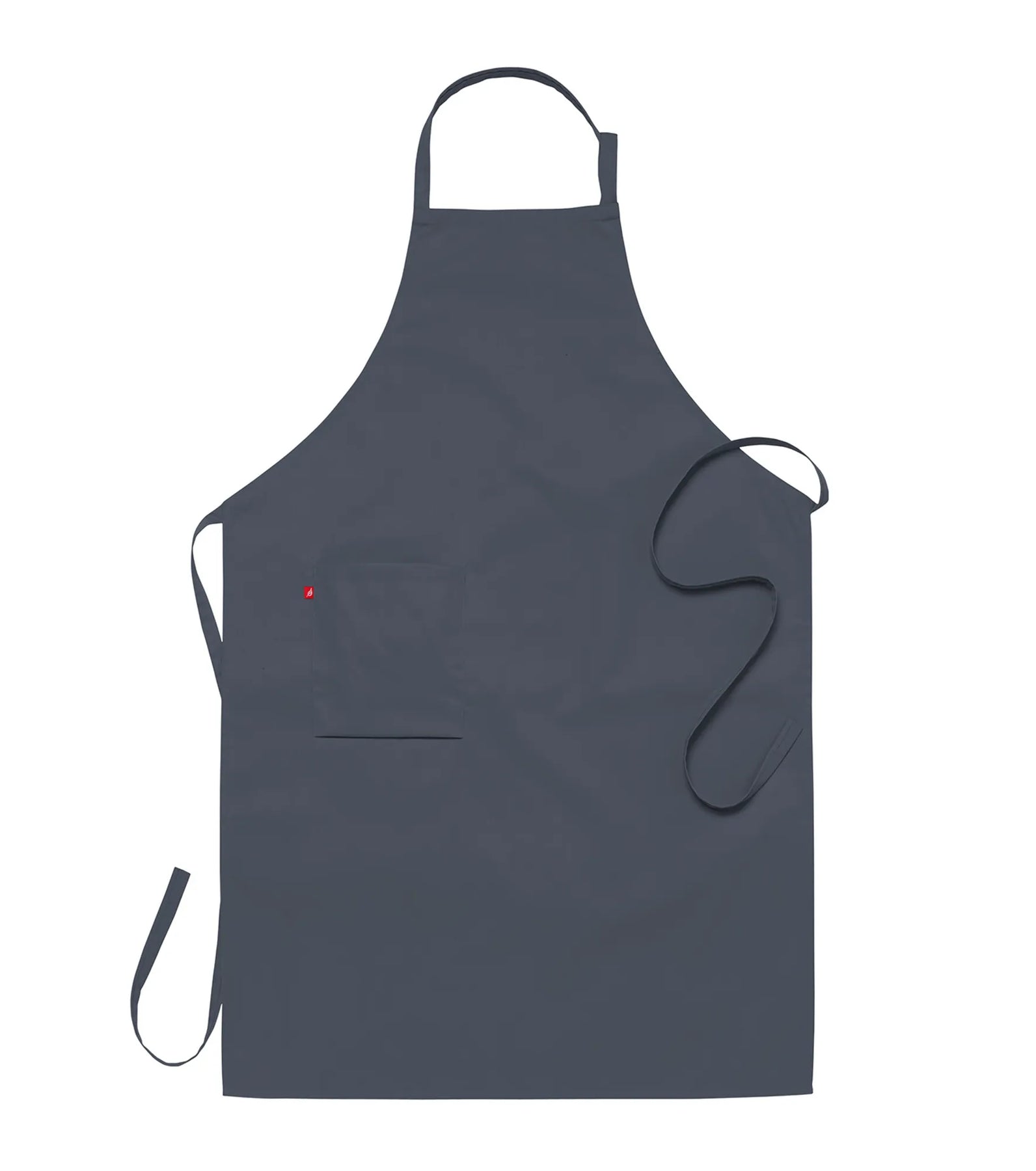 Schort in klassiek model met nekband en ruime zak aan de rechterkant.