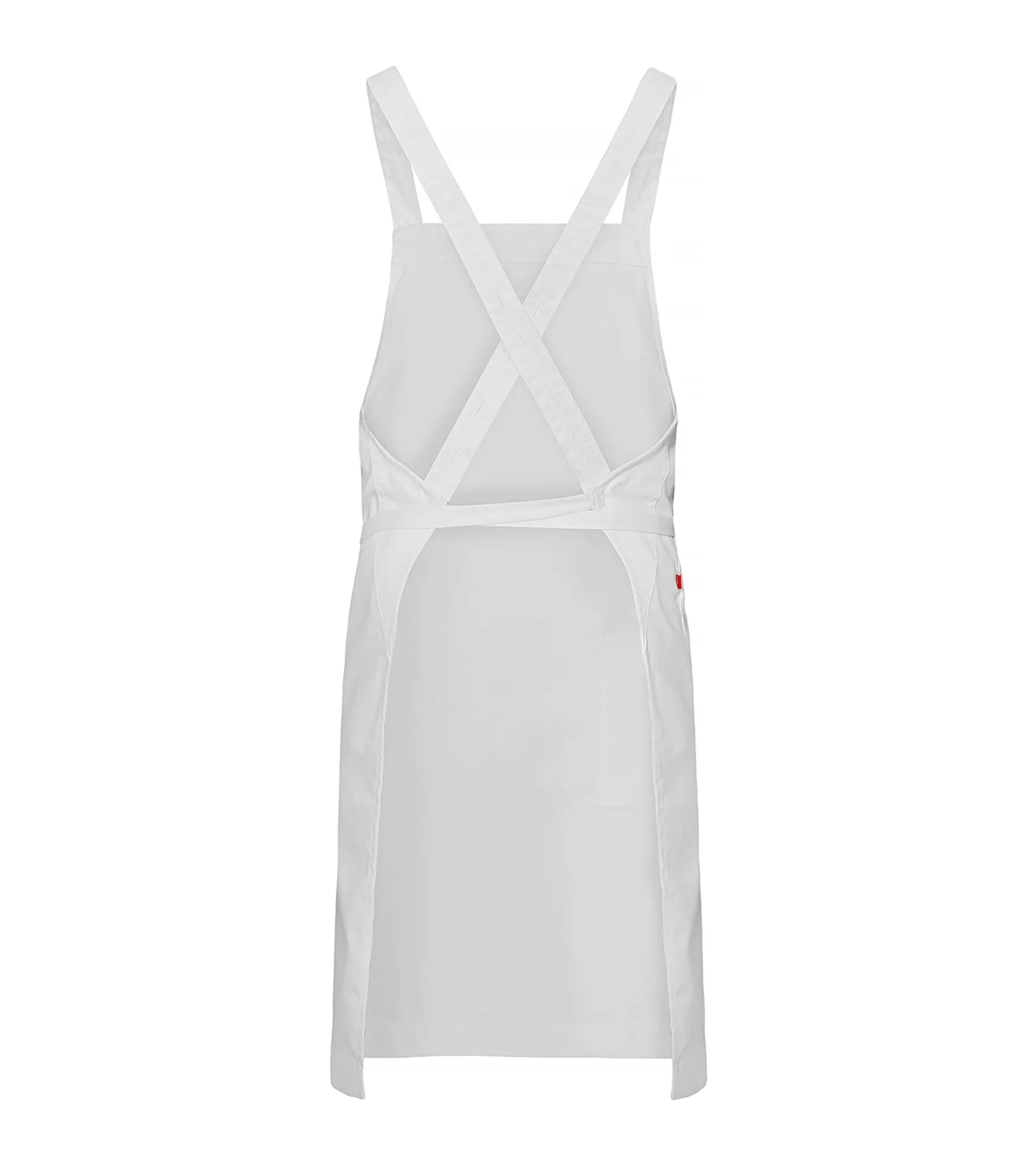 Schort met ergonomie in focus dankzij het kruis op de rug en verstelbare banden