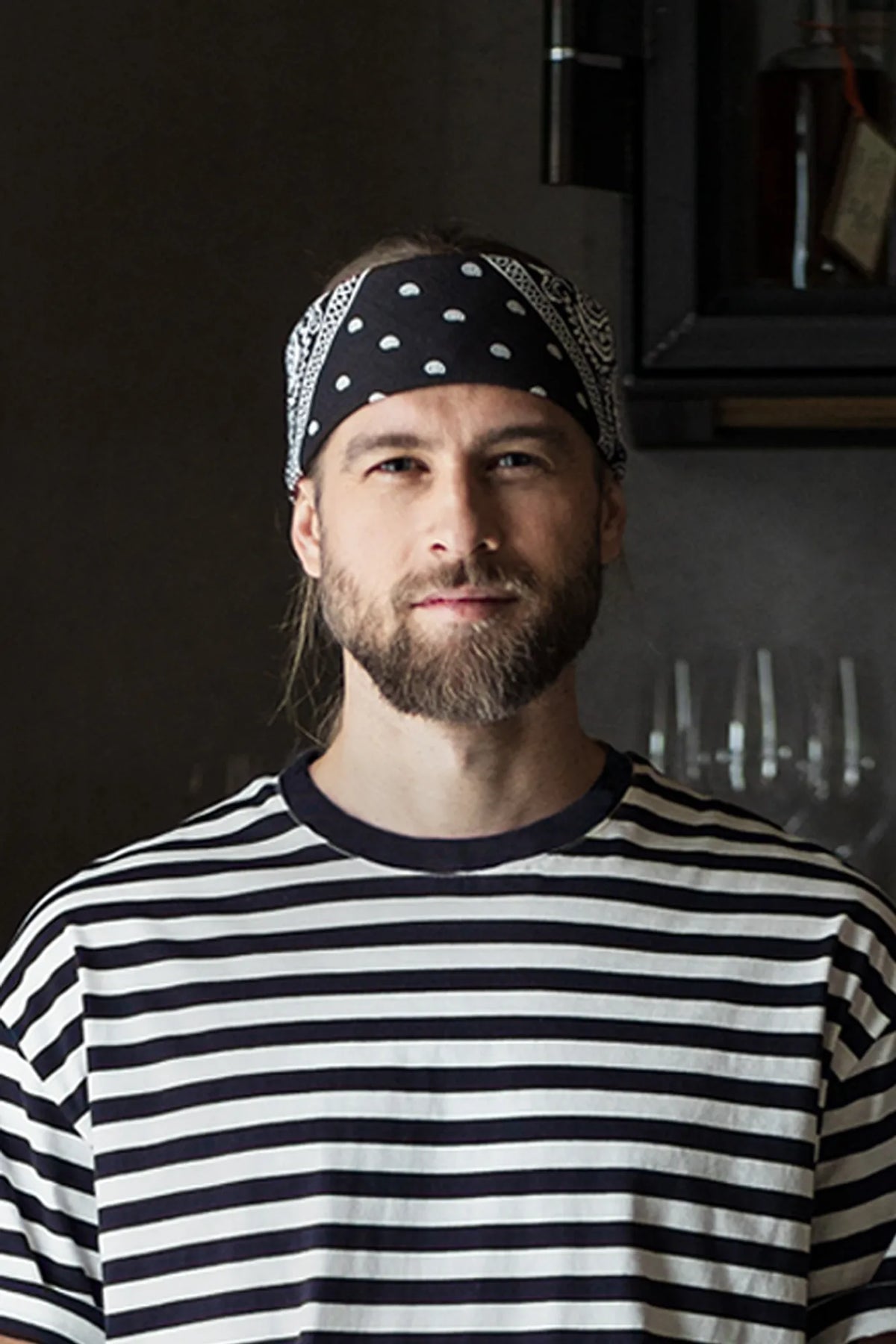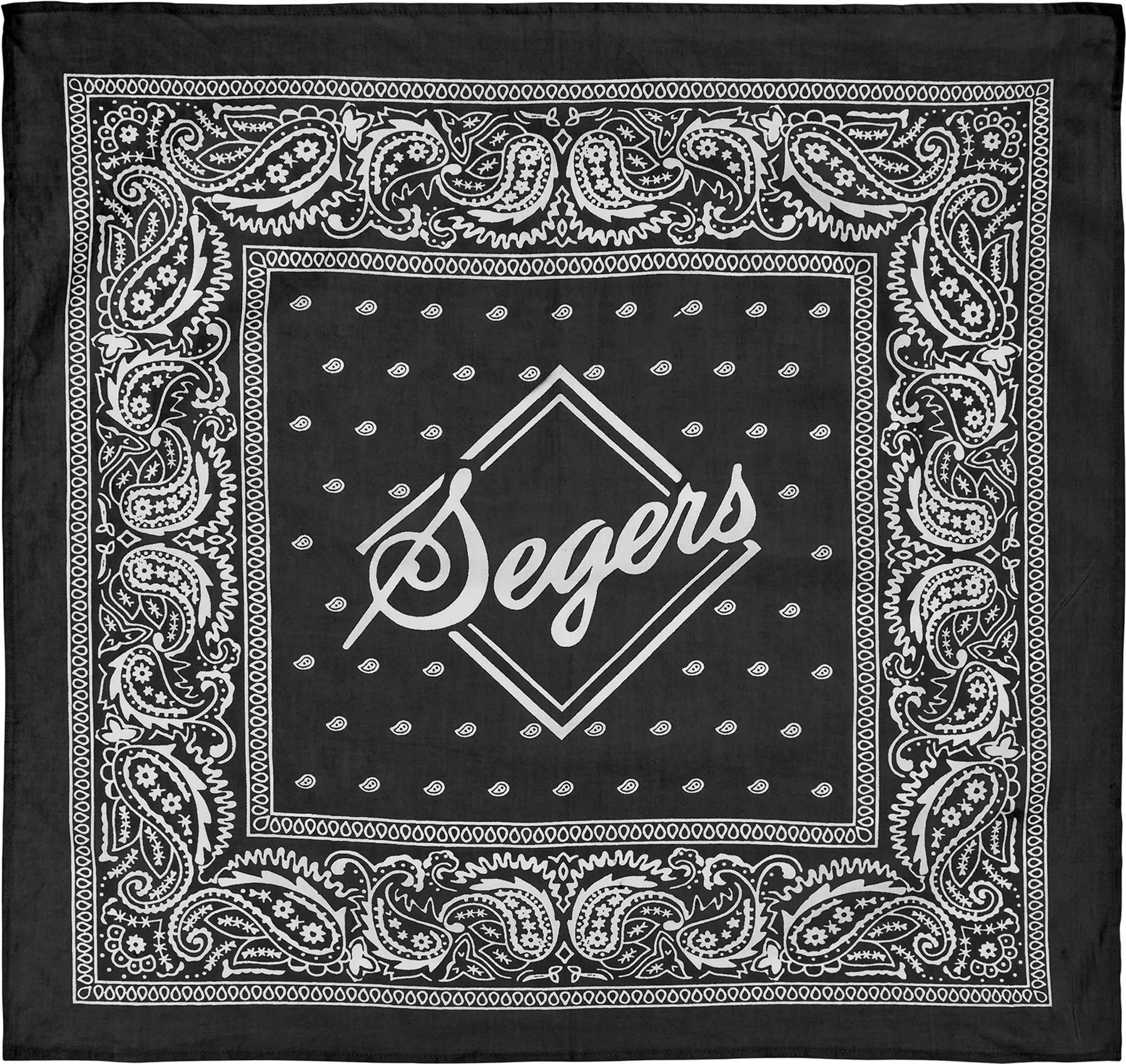 Cotton neckerchief with a classic print that combines a paisley pattern with Segers’ logo.