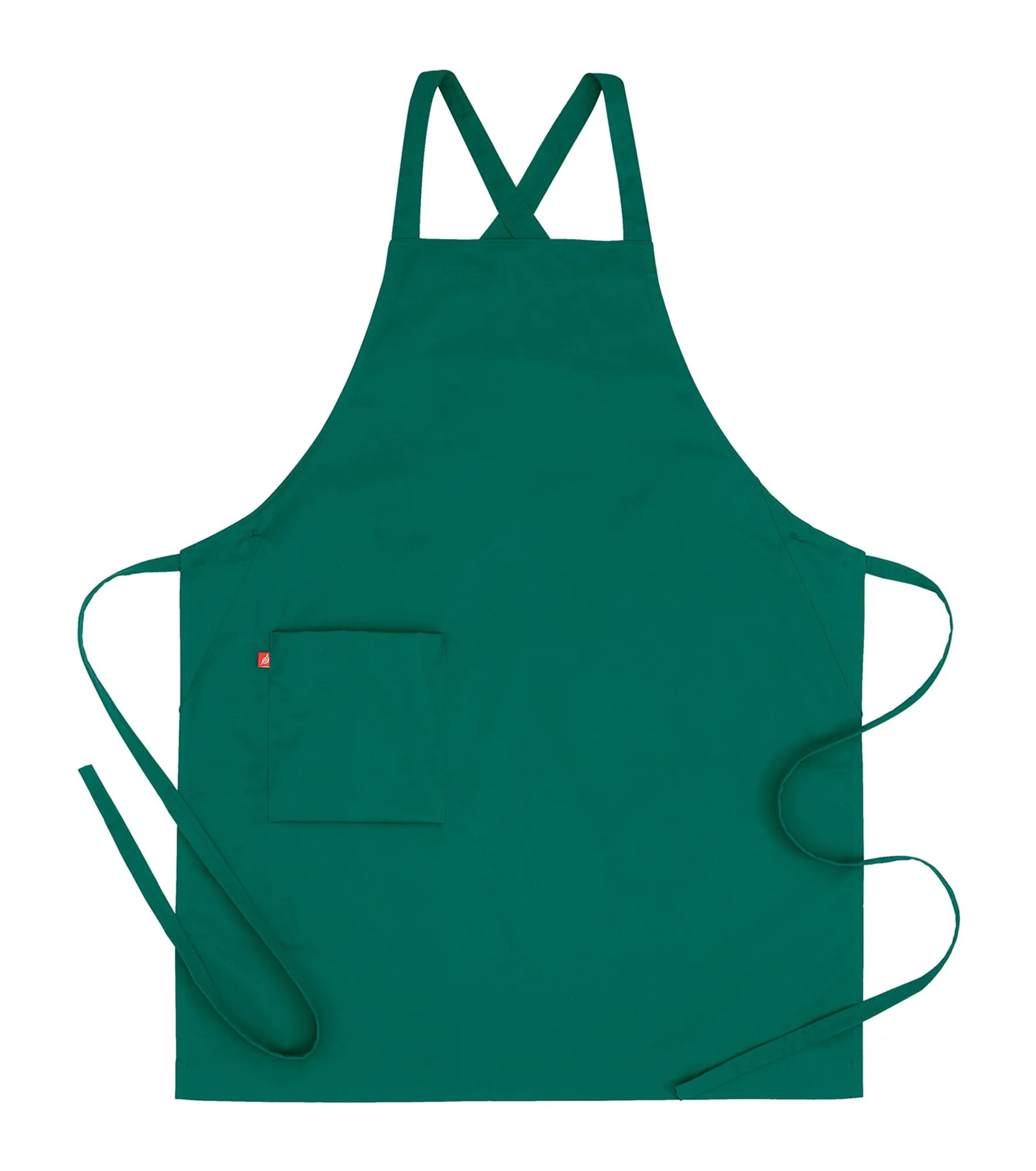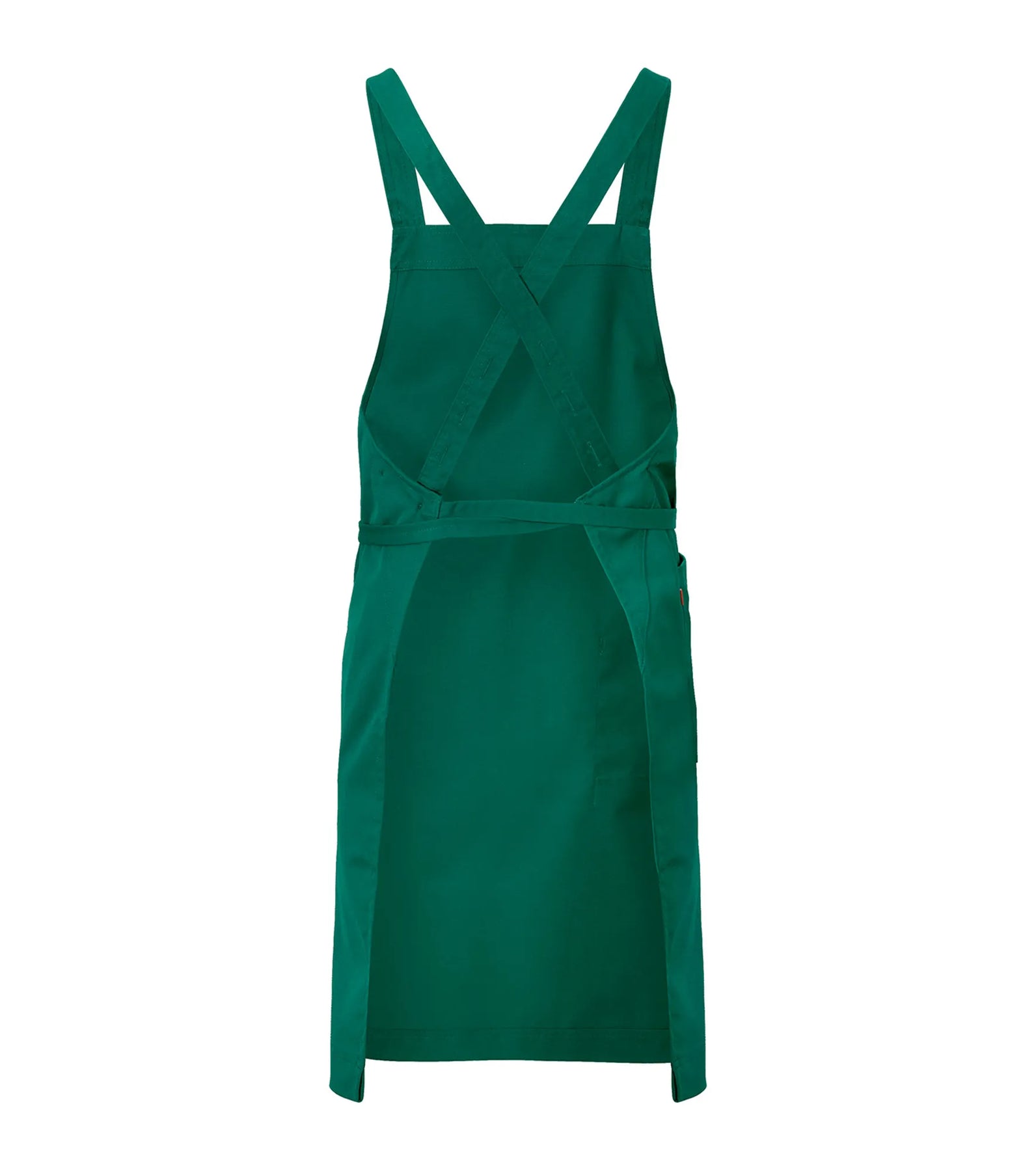 Bib apron with an ergonomically friendly cross-back design with adjustable braces