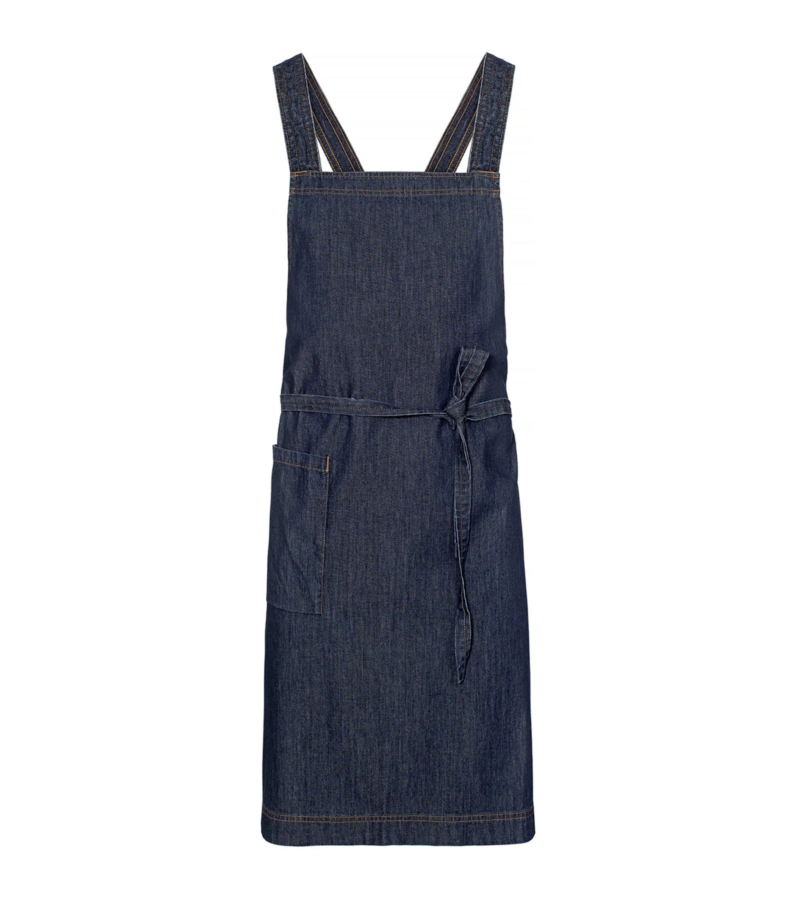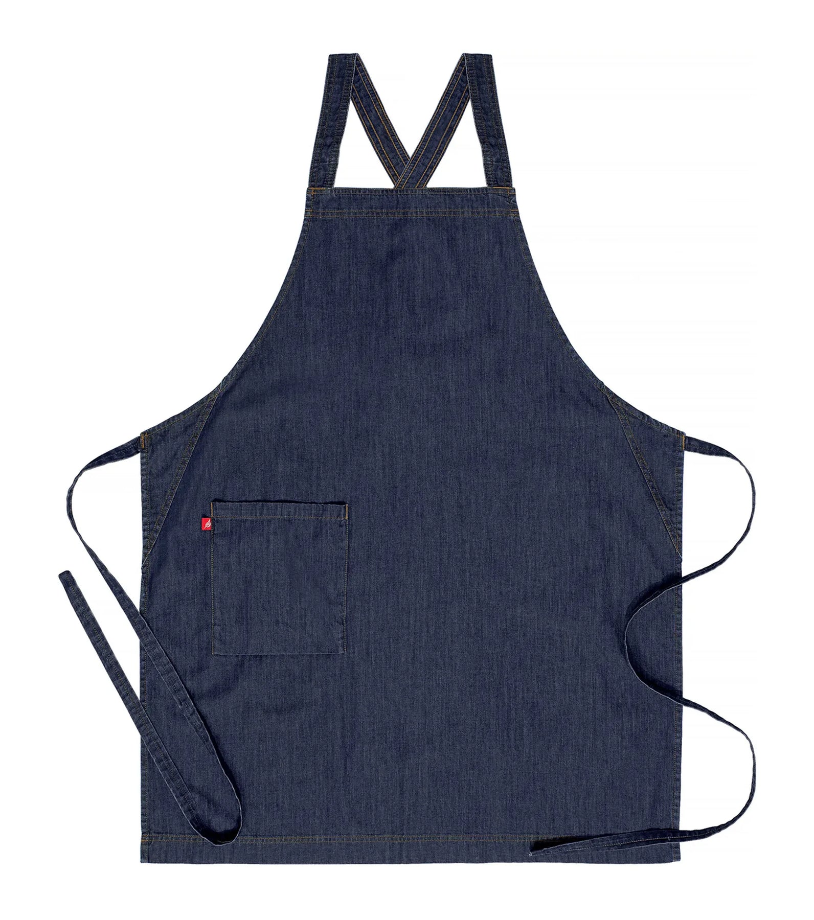 Bib apron with an ergonomically friendly cross-back design with adjustable braces