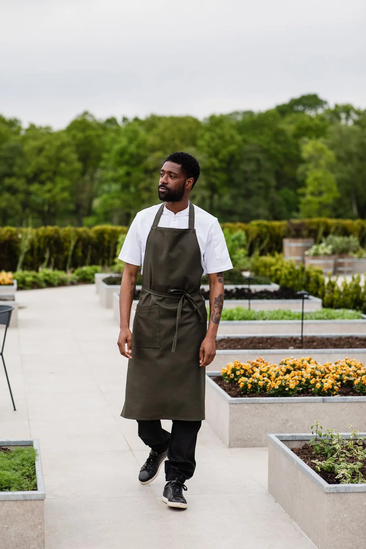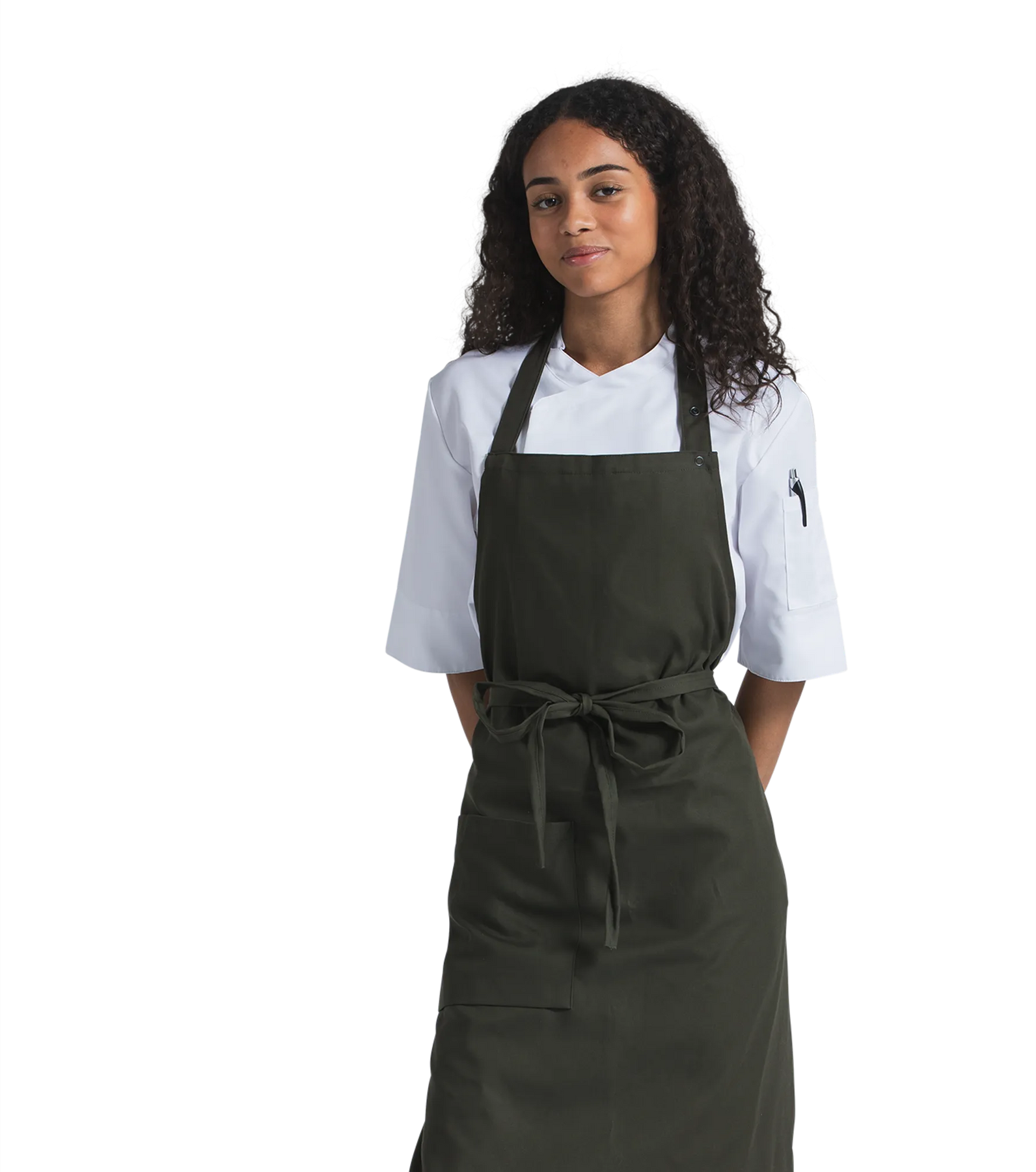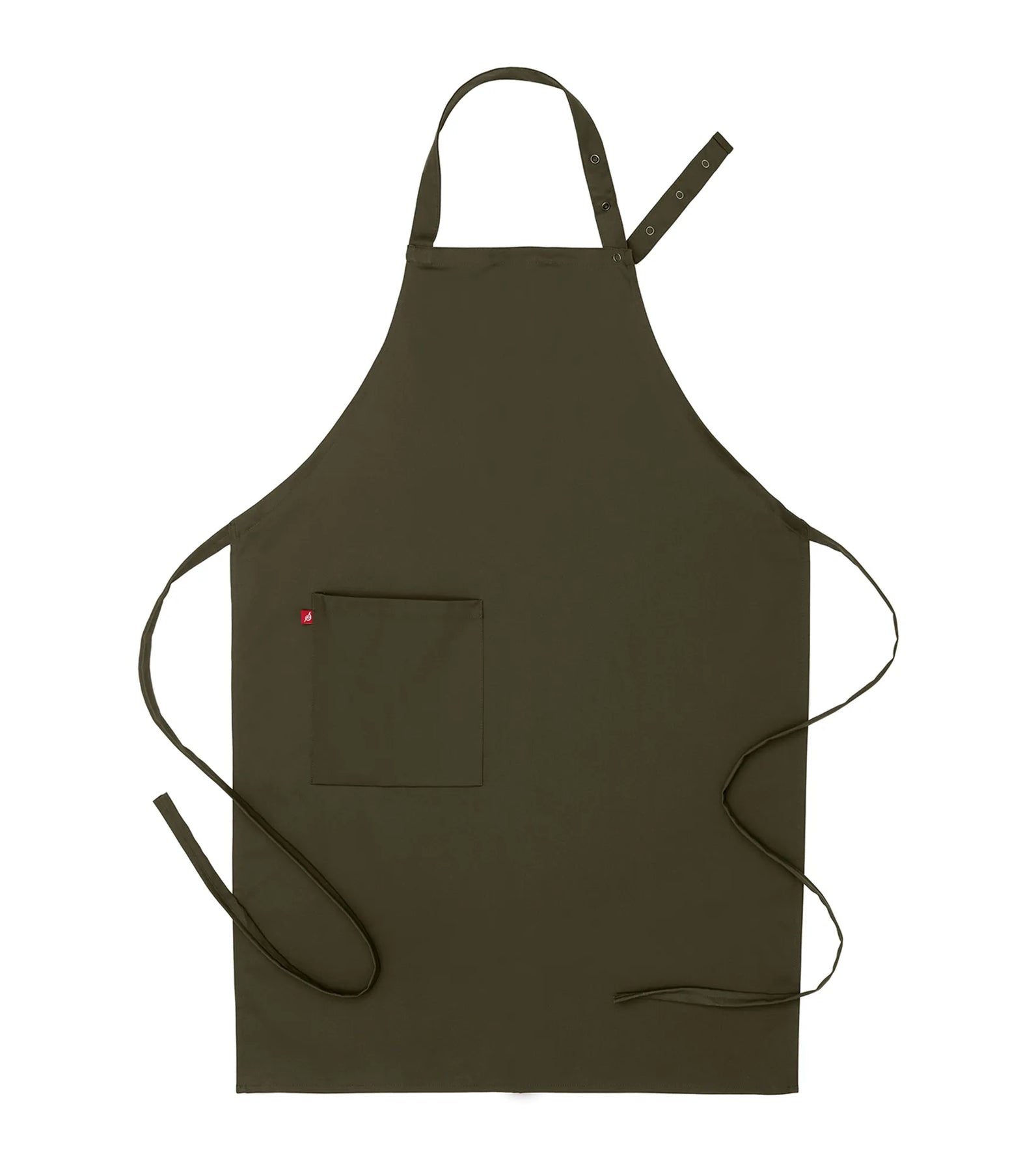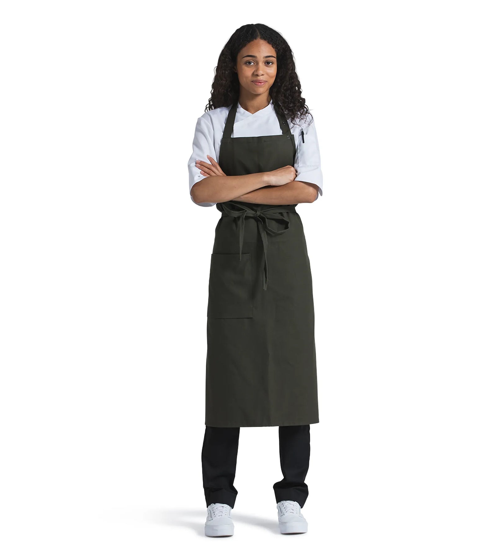 Bib apron in a classic design with a neck strap and a spacious pocket on the right side