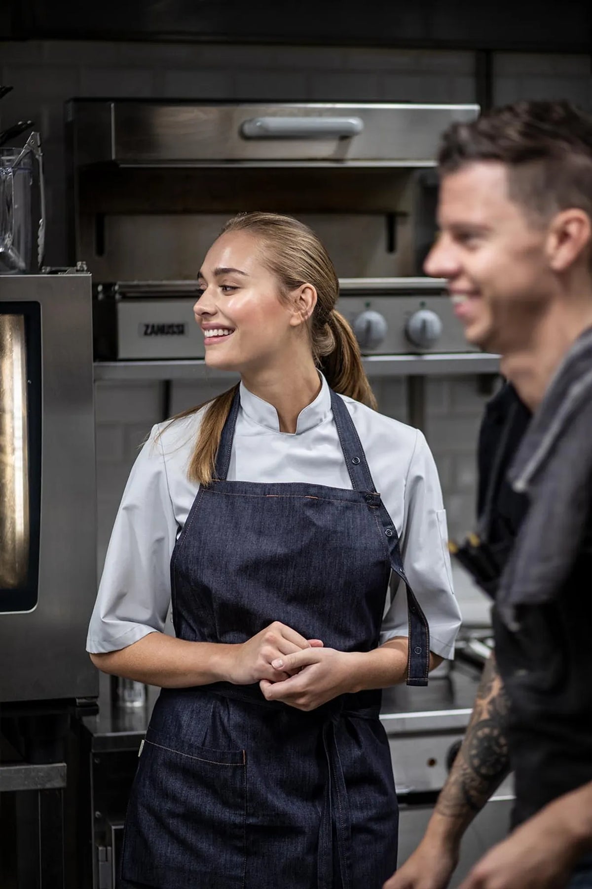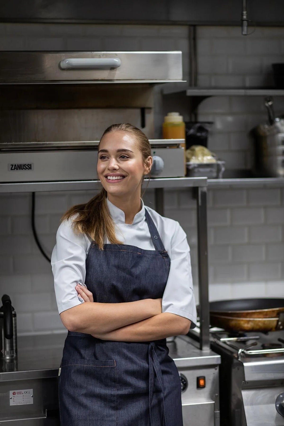 Förklädet sitter snyggare på kroppen än andra denimförkläden eftersom tyget är lite tunnare och följer kroppen bättre än många andra i kraftig denim gör.