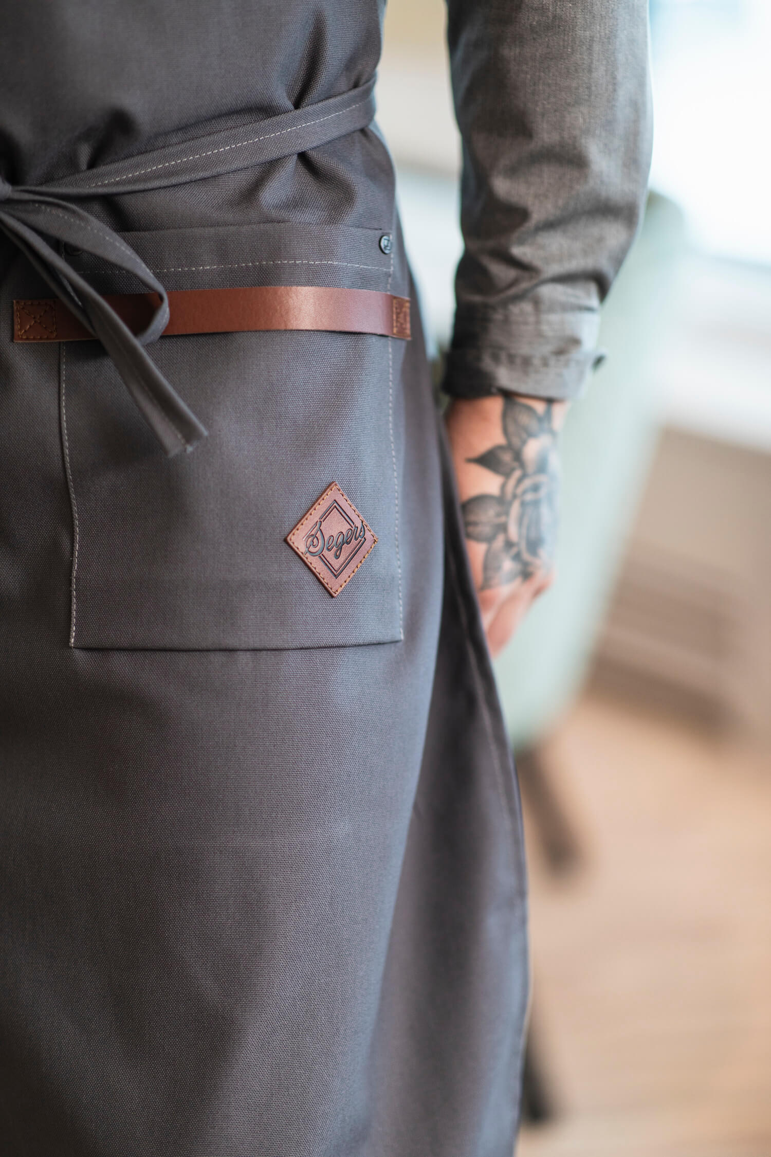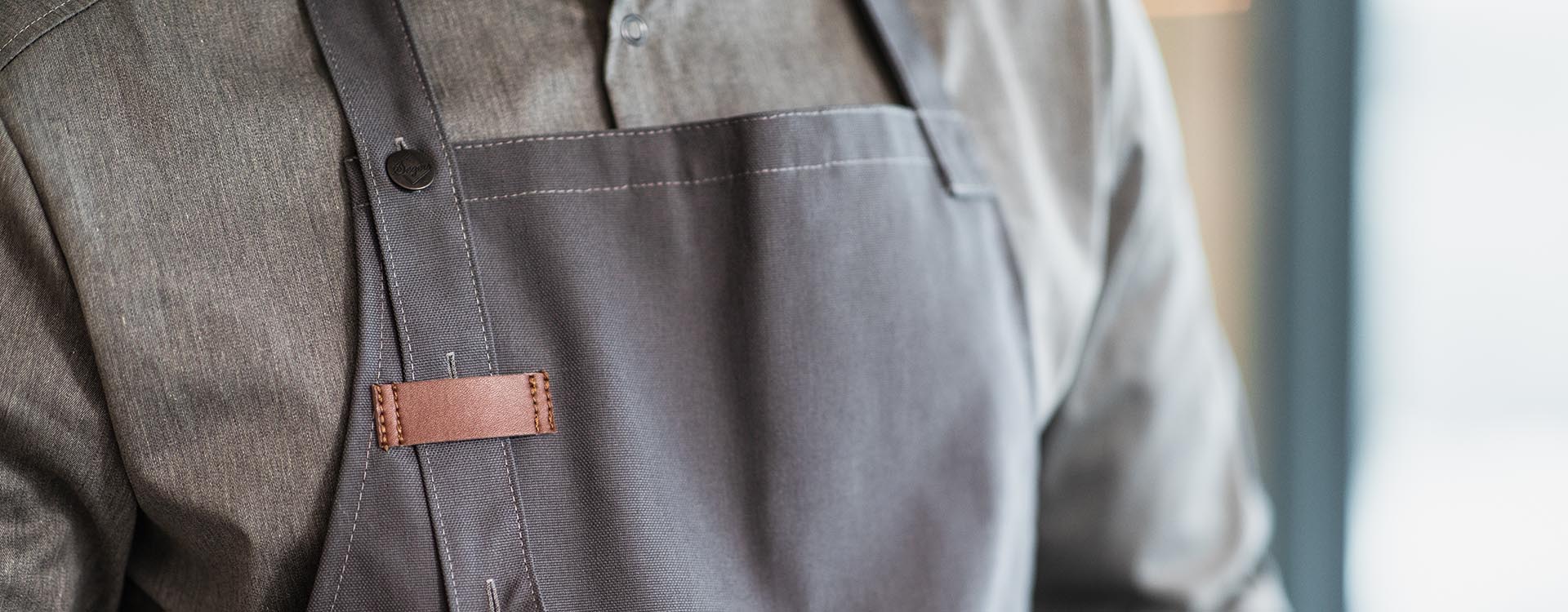 A beloved child has many names but whether apron or pinafore, it is in the details to get the right feeling in your restaurant. Choose from a simple waist apron to a more covering bib apron in leather, an apron in denim, linen, jersey, or plastic. Or why not a more environmentally neutral material such as Tencell. Your apron fits just as well in the kitchen, serving, and sommelier as in the bar or café.