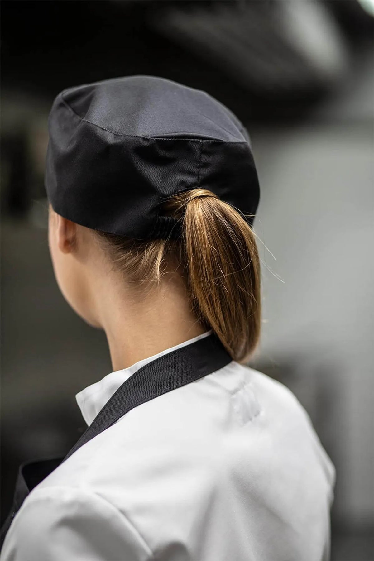 Chef’s hat with elasticated back. S/M (54-58 cm), L/XL (59-63 cm).
