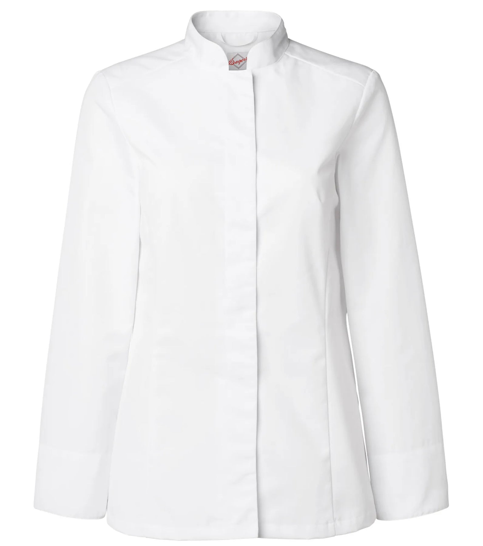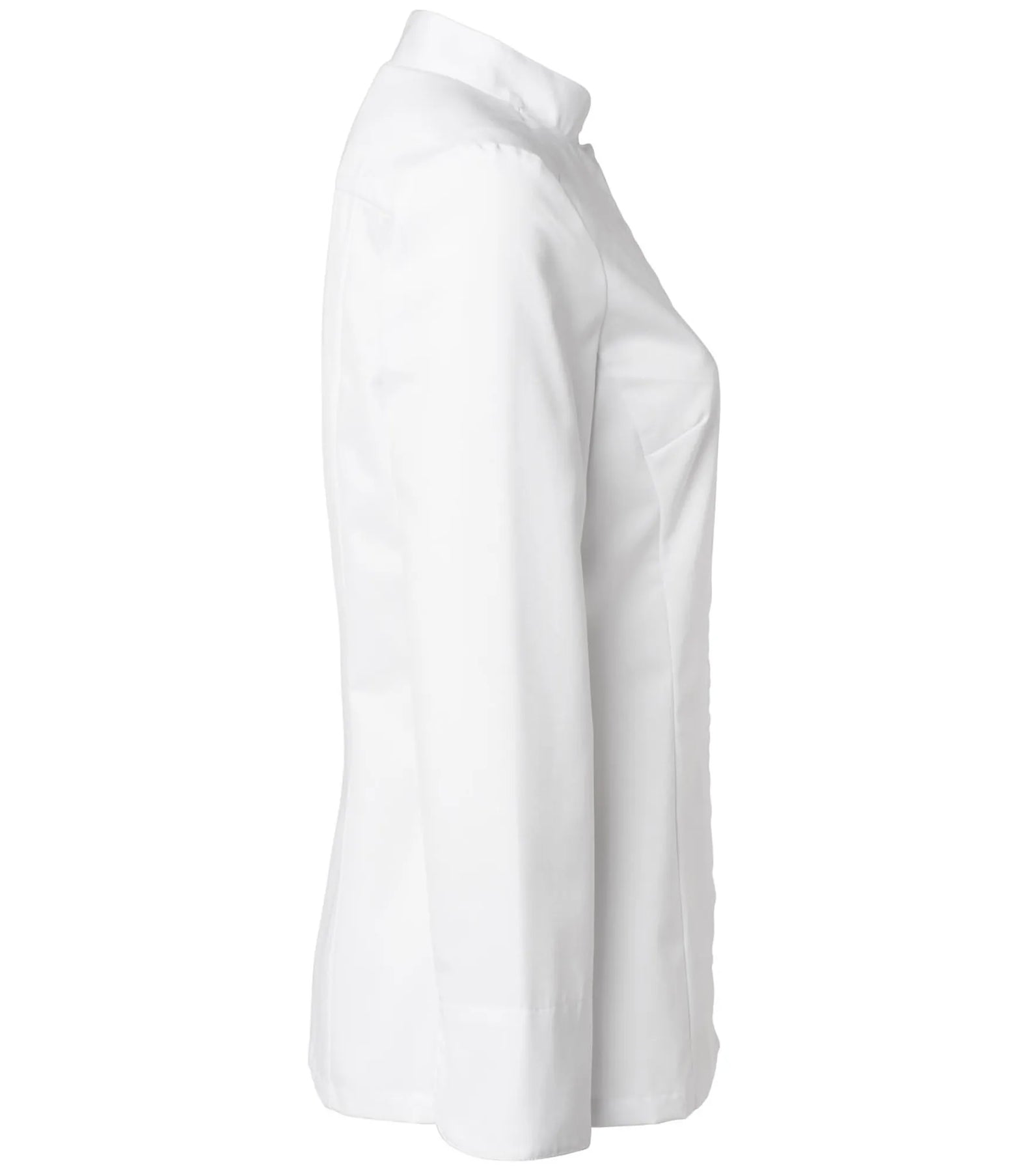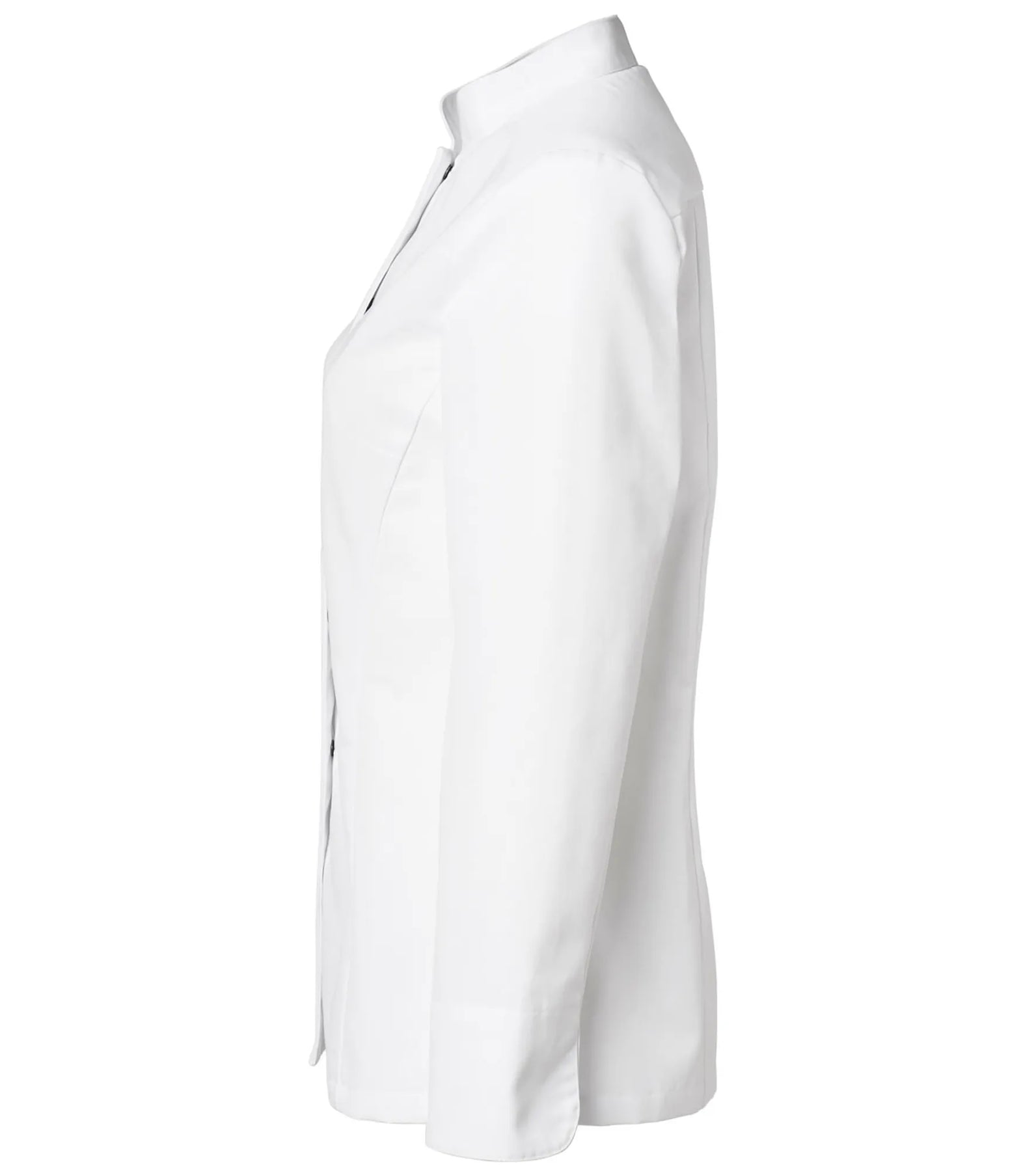 Modern women’s chef shirt with long sleeves and a slightly slimmer fit