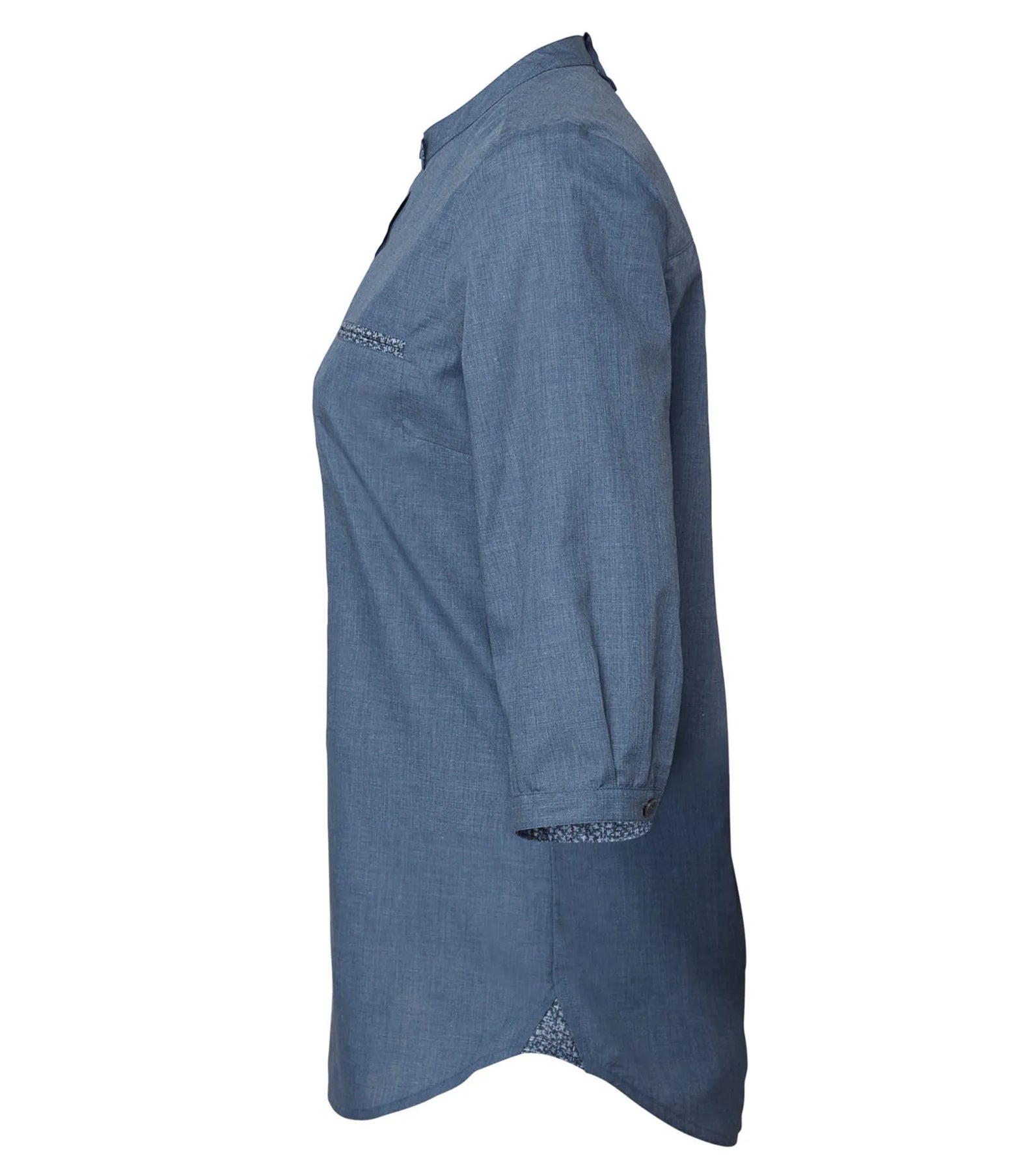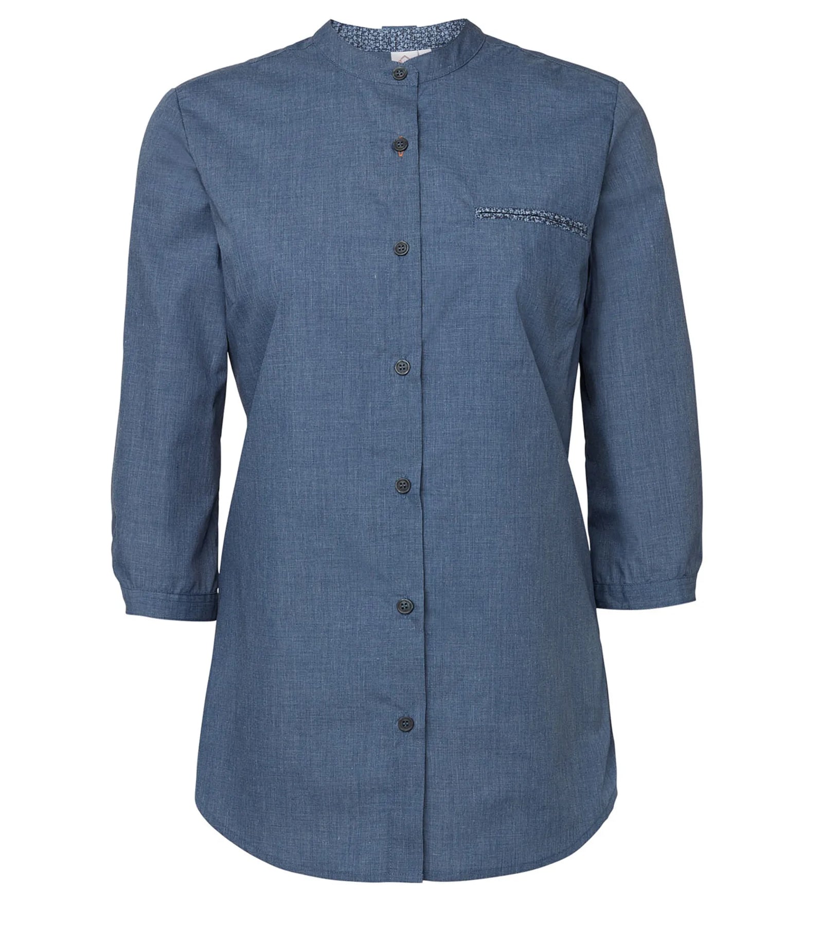 Women’s shirt with a band collar, chest pocket and 3/4 sleeves