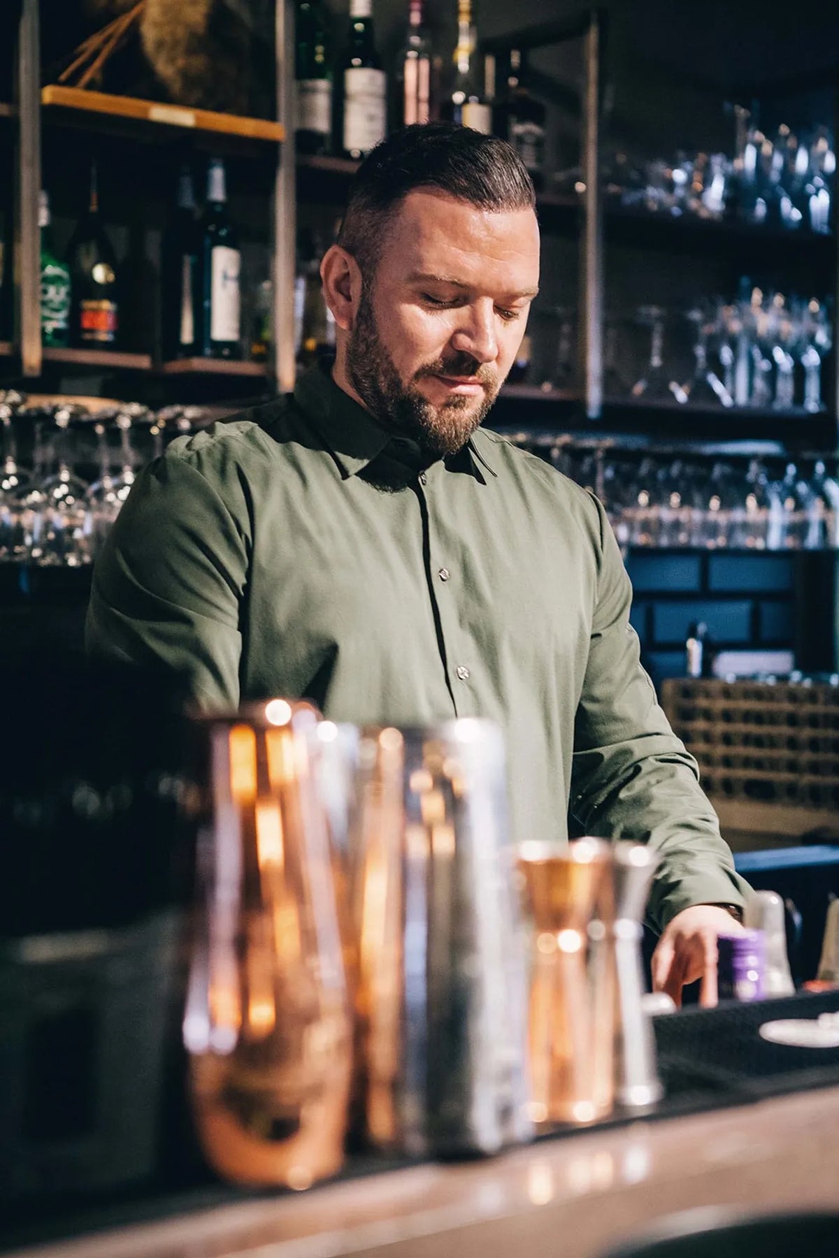 1013 Shirt Action stretch (Unisex) - Olive green