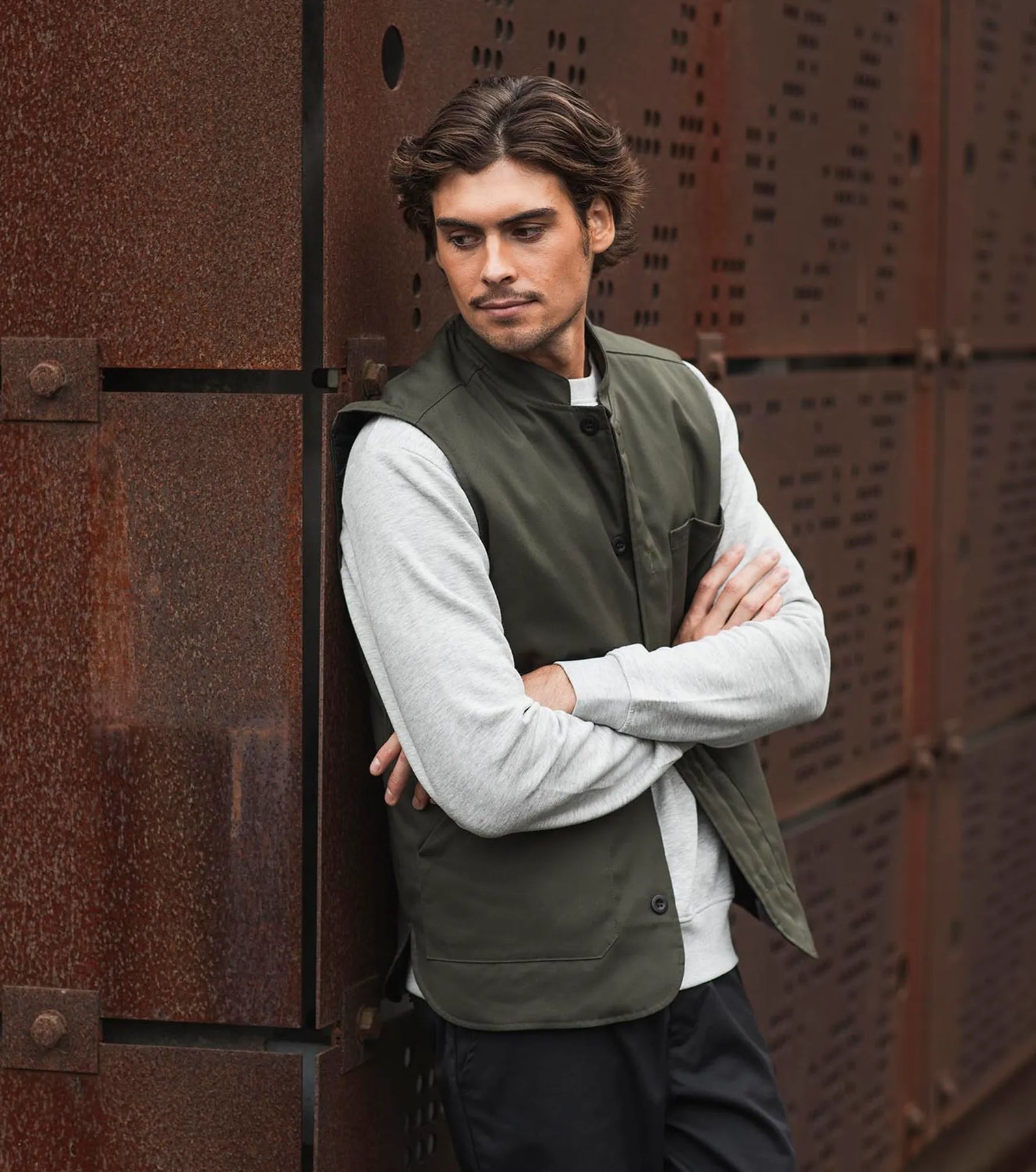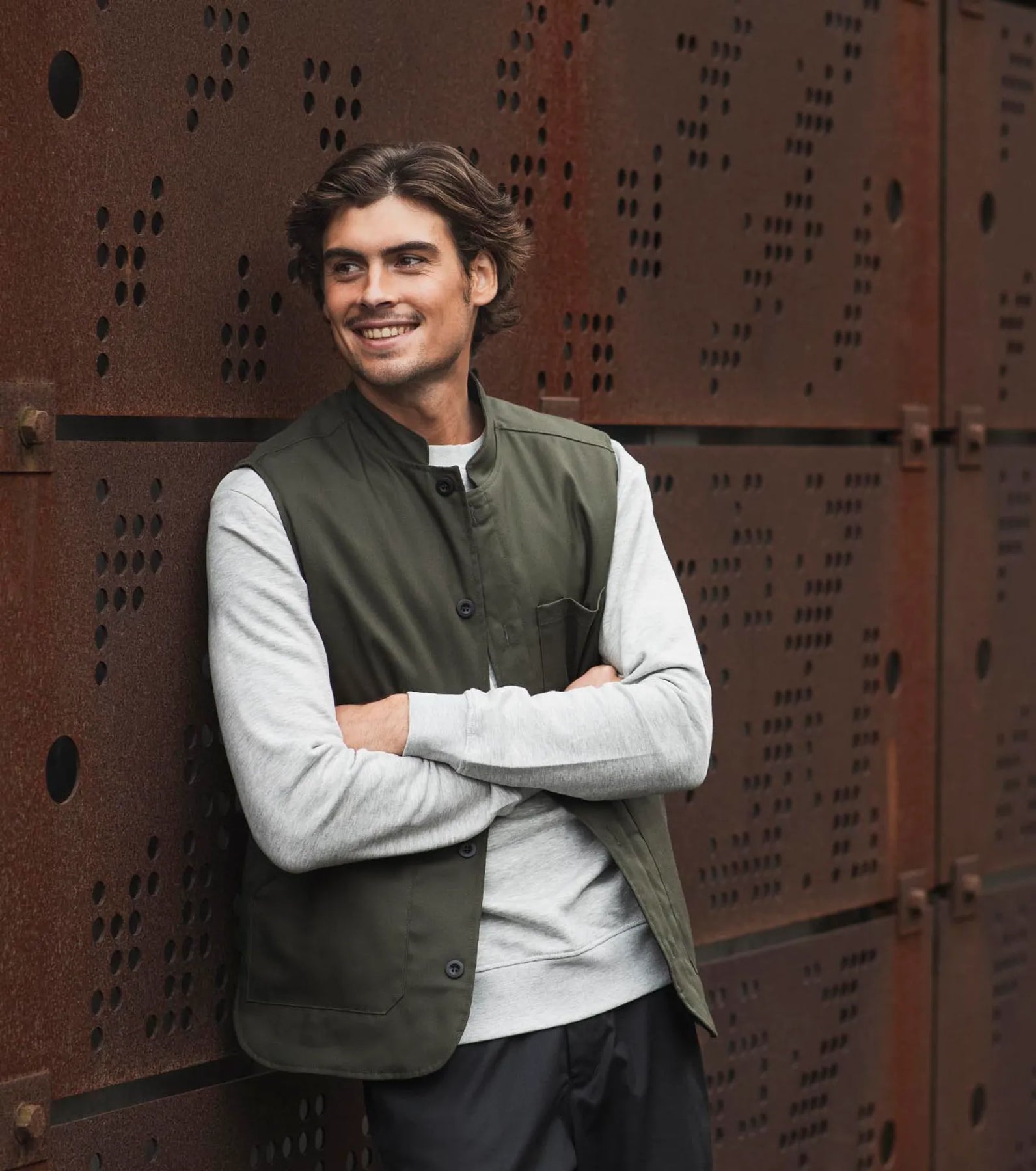Padded unisex vest for serving staff. Durable outer fabric and a cosy lining for cold outdoor terraces. Practical breast pen pocket. Side slits for a comfortable fit.