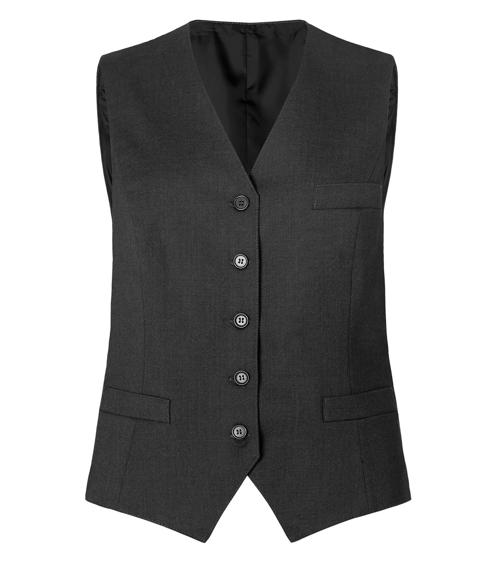 Women’s waistcoat with chest pocket and side slits. The length (centre back) for size C38 is approx. 54 cm.