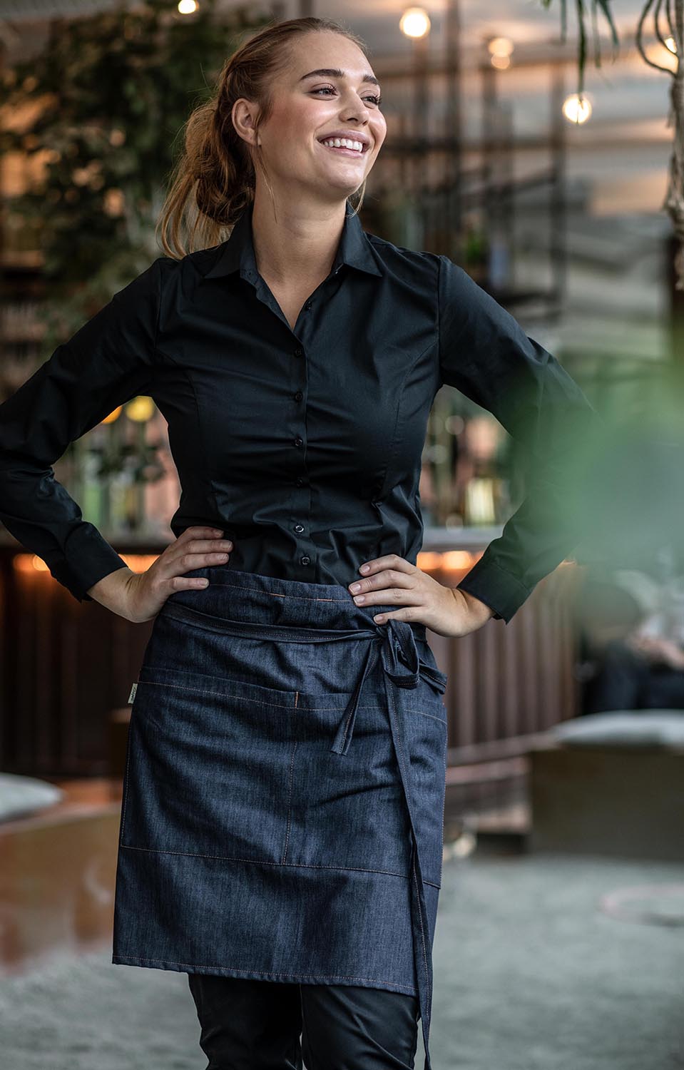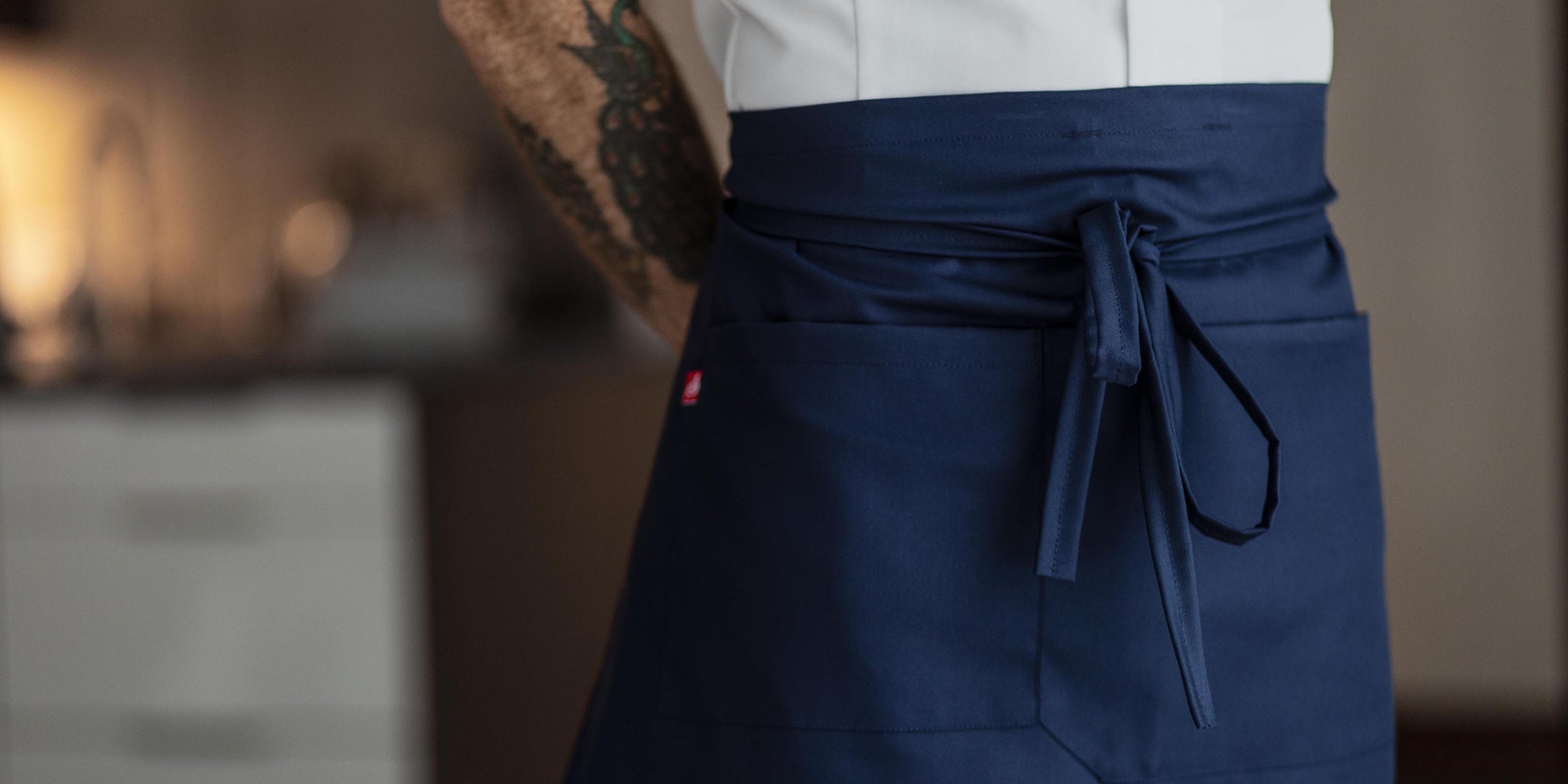 A good waist apron not only protects you and your pants but also characterizes your profession and your business and gives a neat and uniform impression whether you work in the kitchen or with serving. We have aprons in several different colors, in lovely patterns and various styles & qualities so you can mix and match exactly as you want.