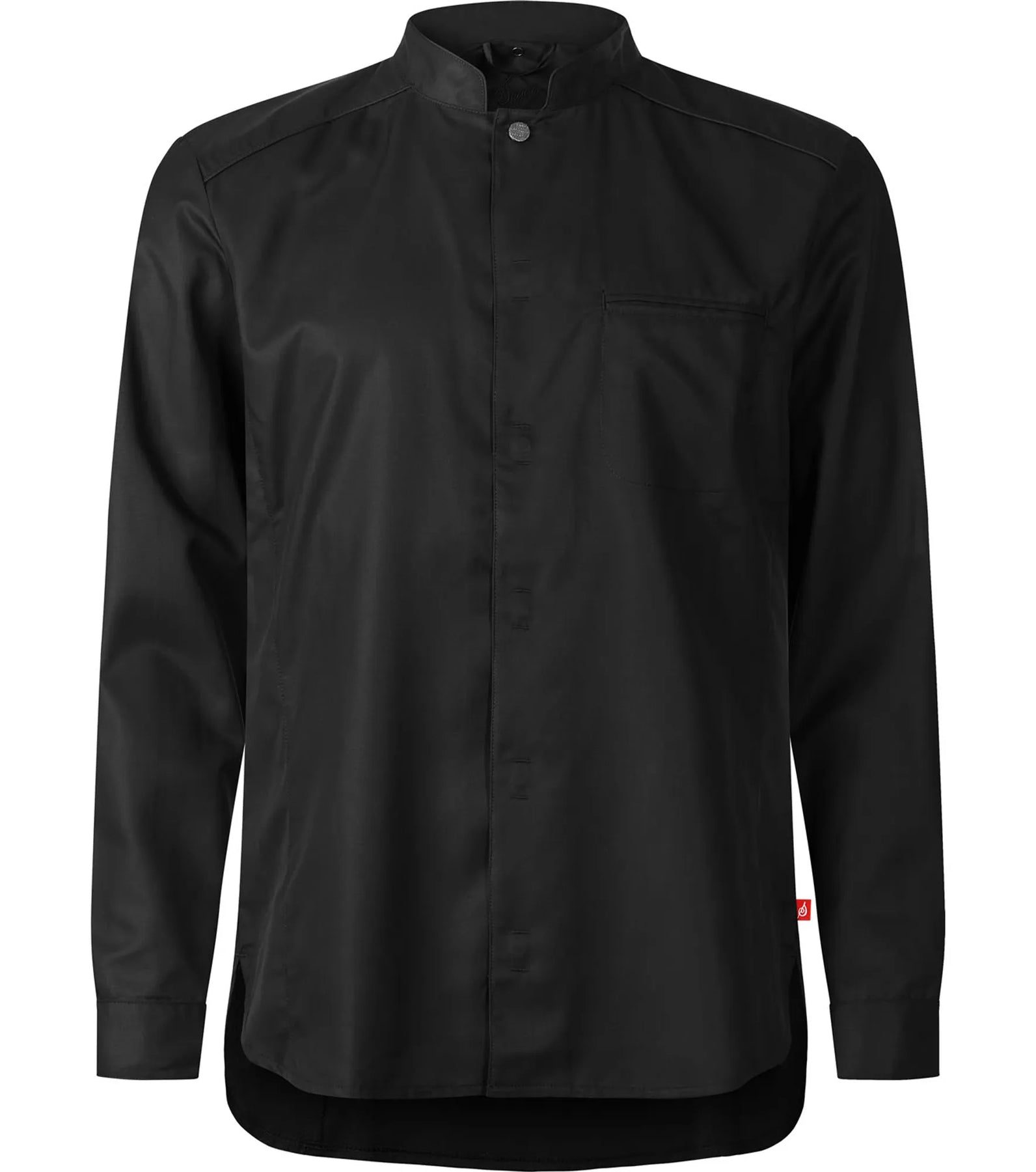 Modern men’s chef shirt with long sleeves and a slightly slimmer fit. This design is inspired by a shirt, so it has a rounded hem and is longer at the back.
