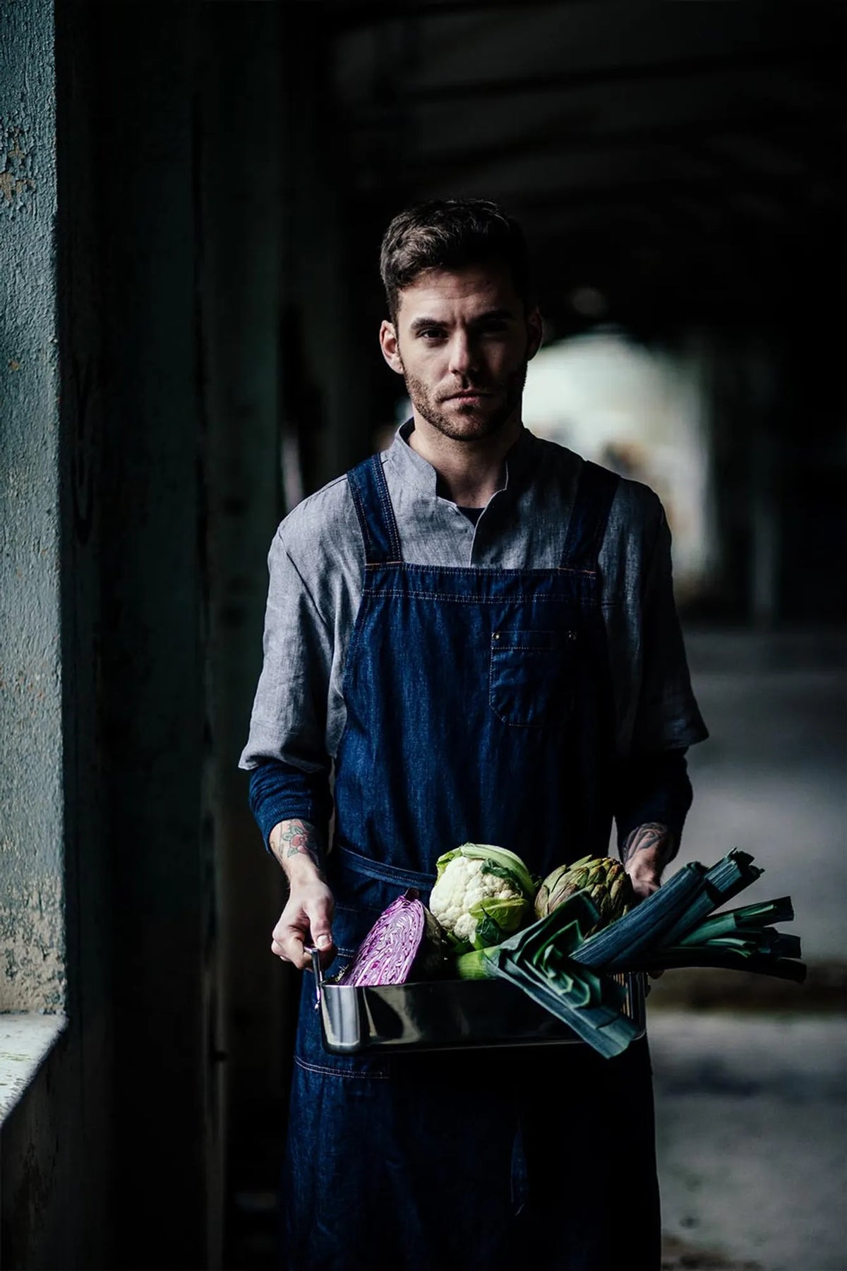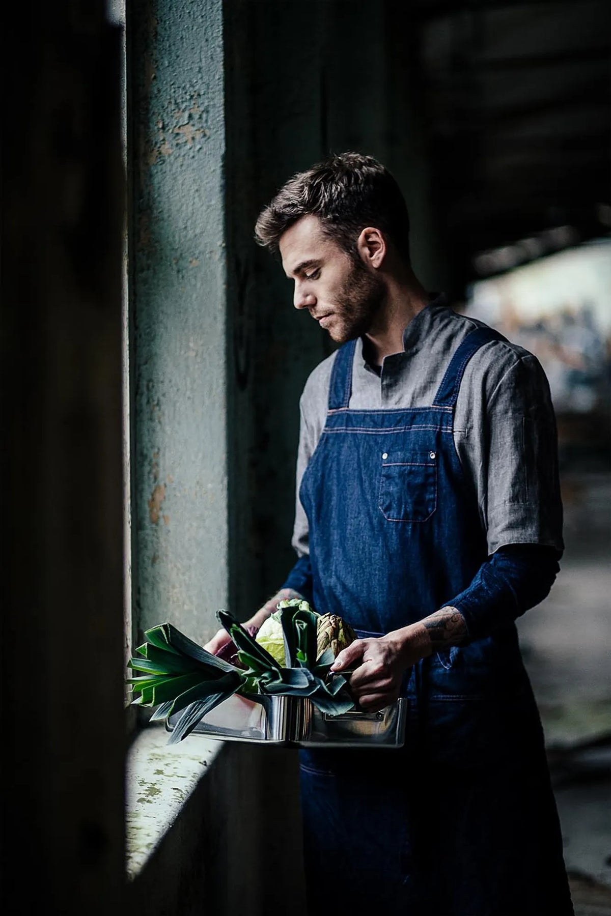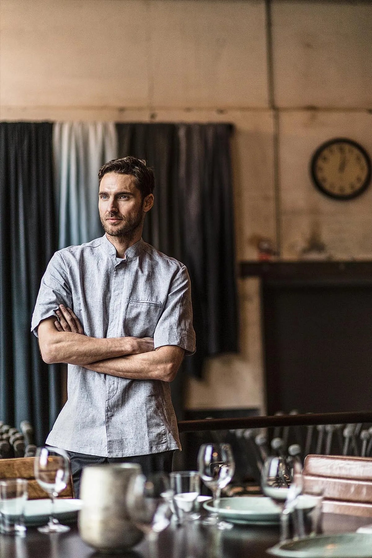 Modern men’s chef’s shirt with short sleeves and a slightly slimmer fit