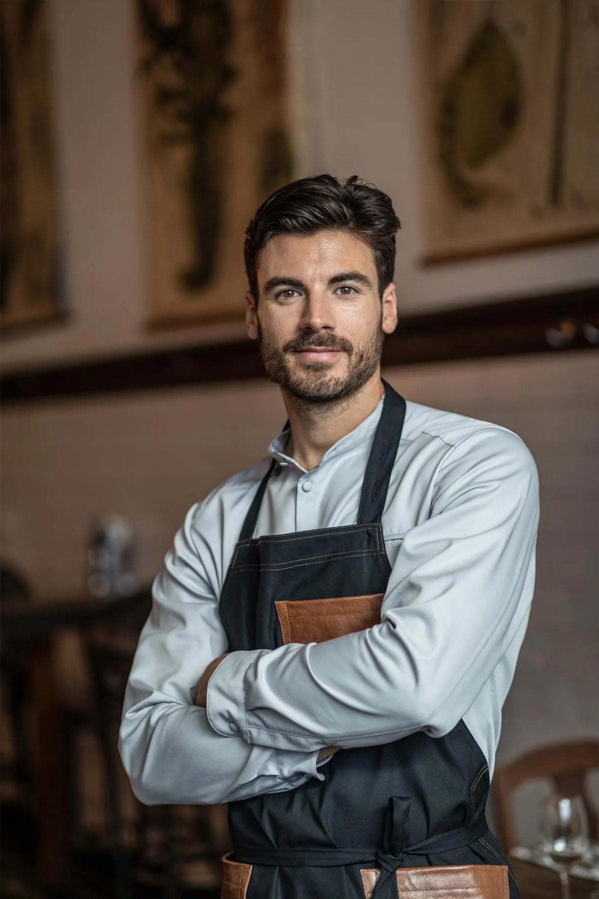 Modern men’s chef’s shirt with long sleeves and a slightly slimmer fit.