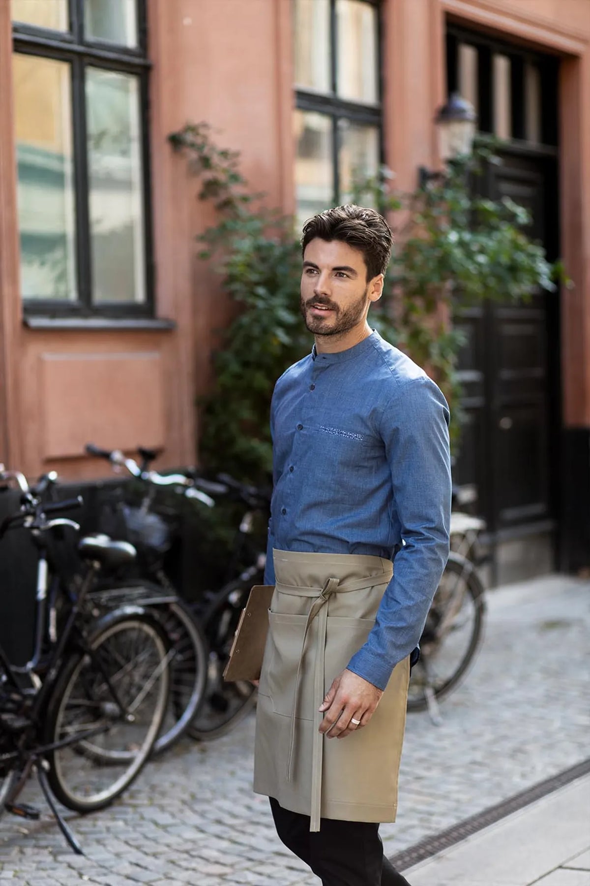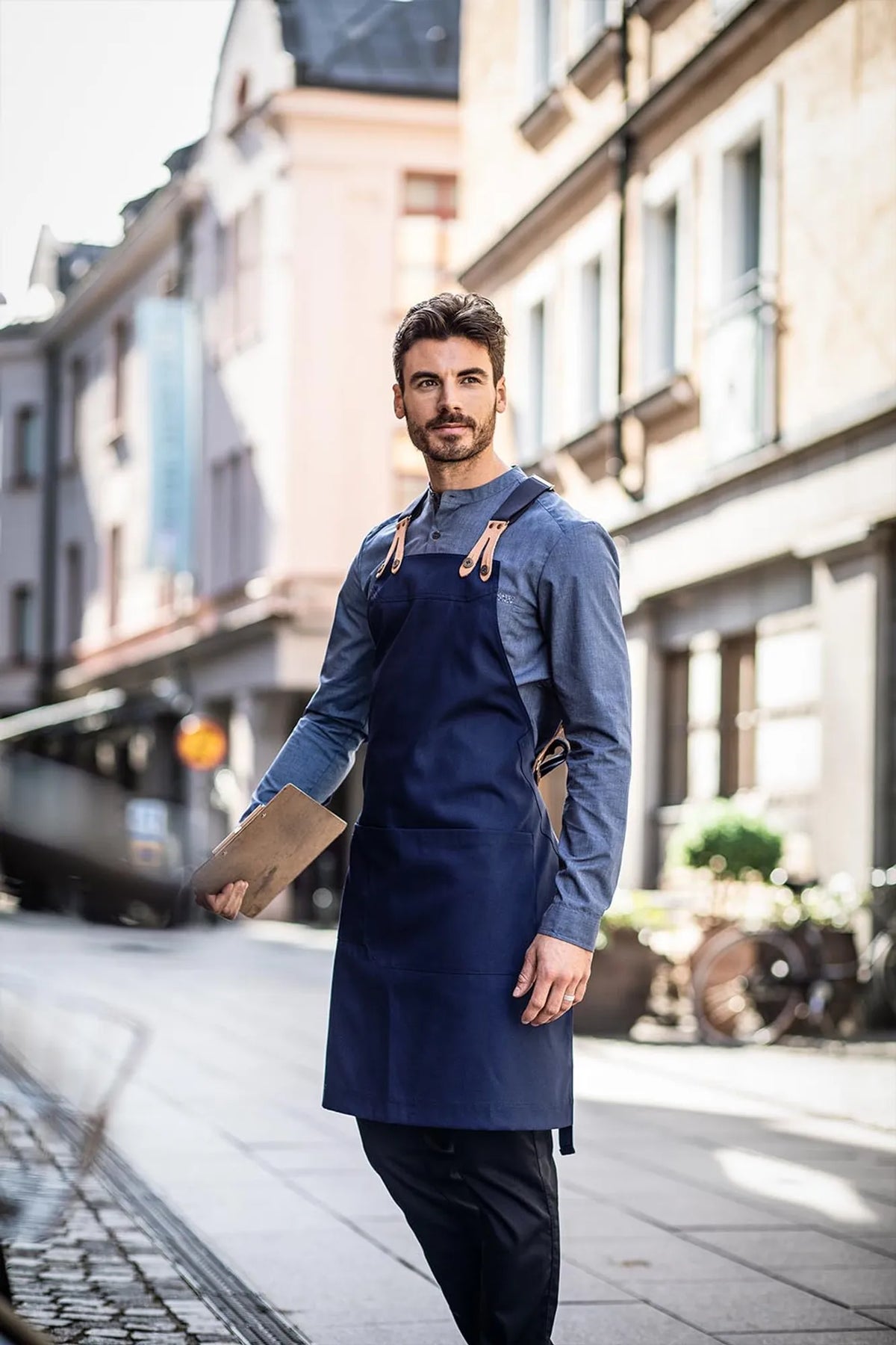 • Tab on the back of the collar for apron ties