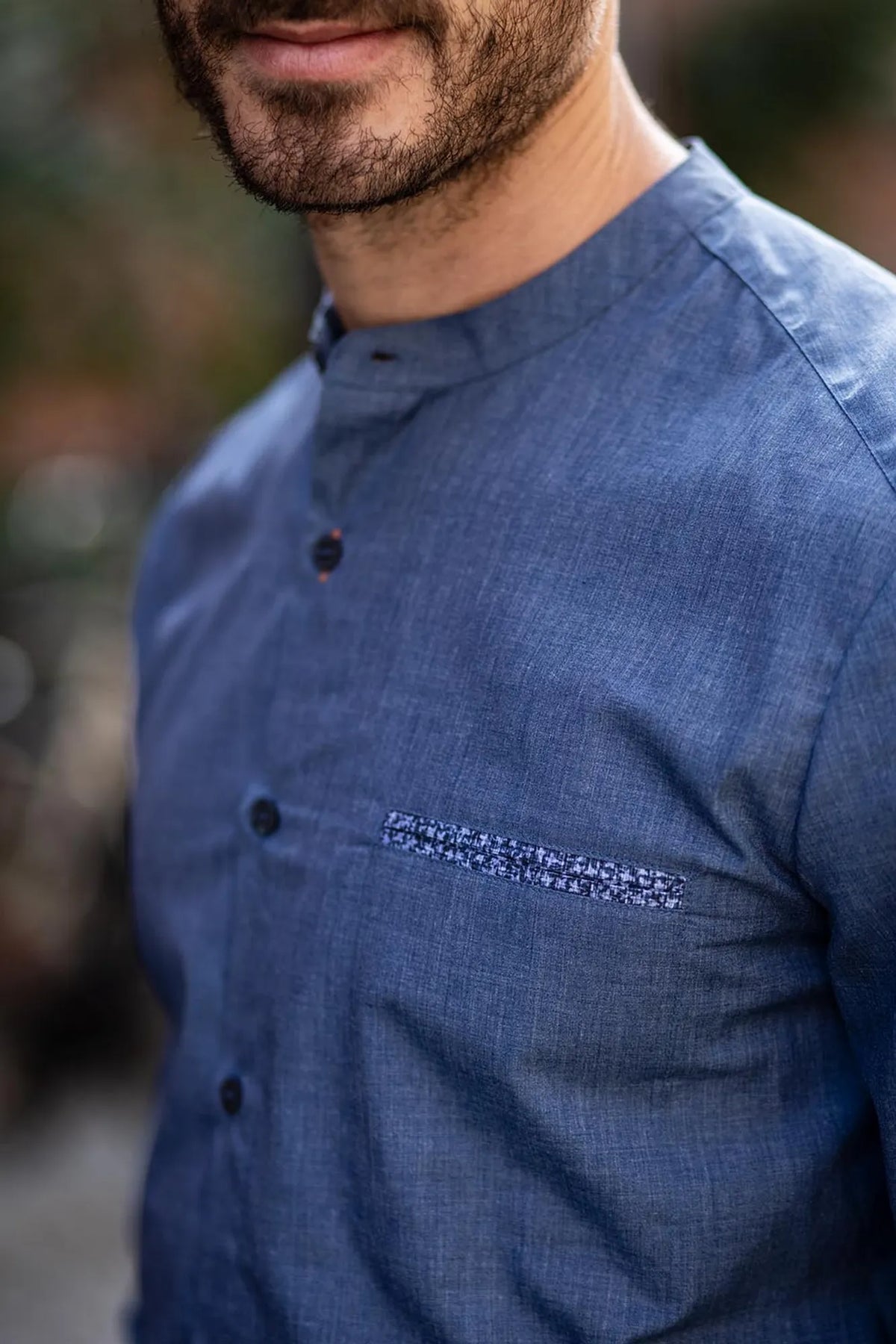 Men’s shirt with a band collar and chest pocket