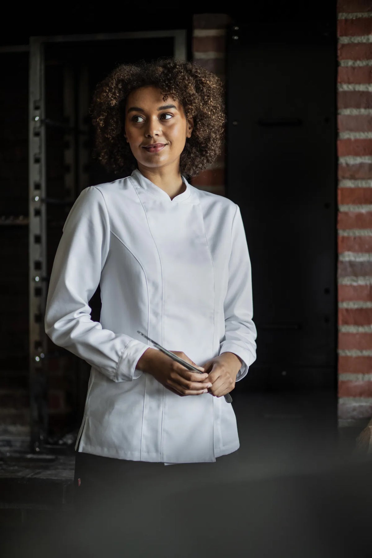With Segers you have full control from start to finish. 1004 Women’s stretch chef jacket is mainly produced in our own production facility in Ukraine where about 140 employees work. Here we also have close access to our material and accessory suppliers.