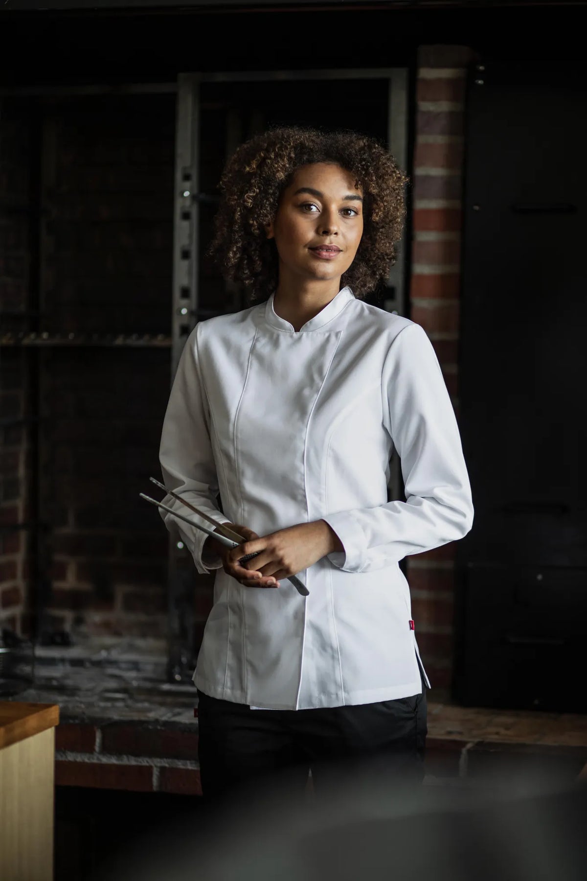 1004 Women’s stretch chef jacket is produced in our own factory in Ukraine.