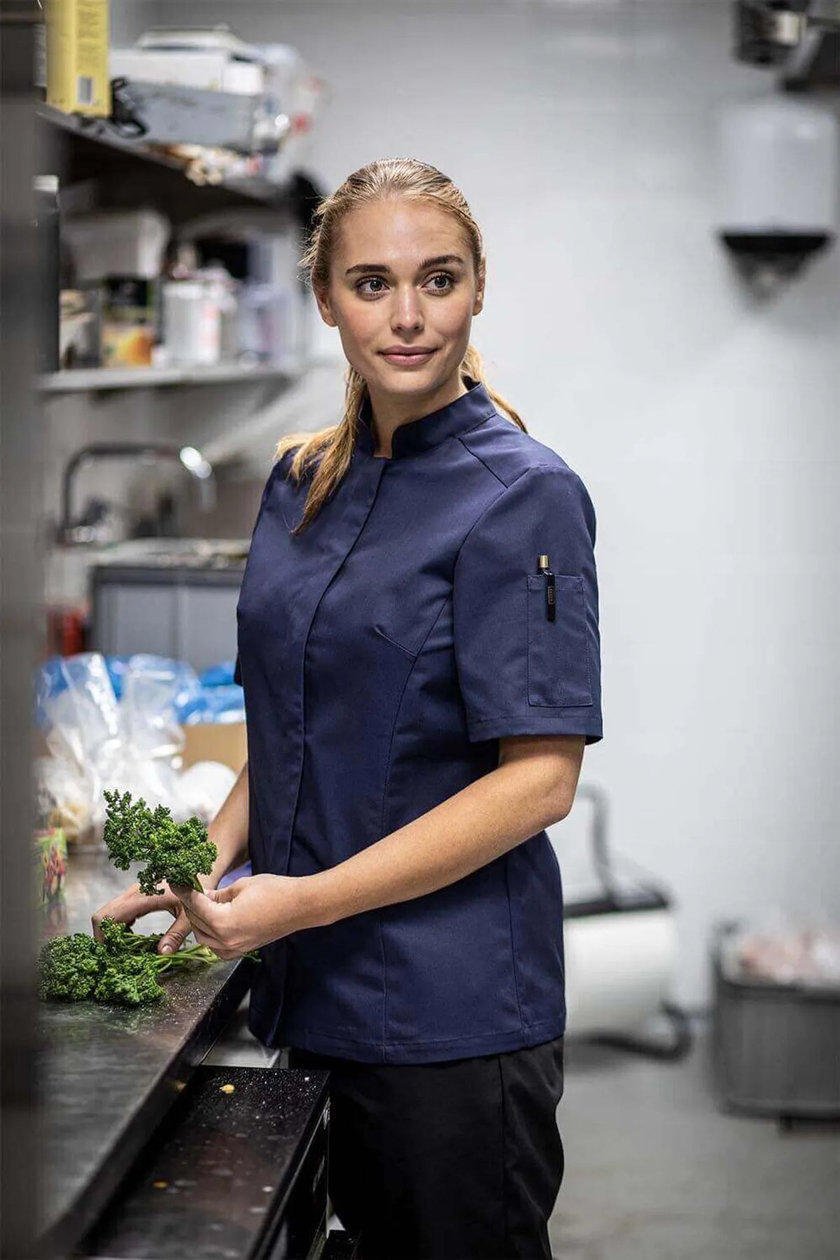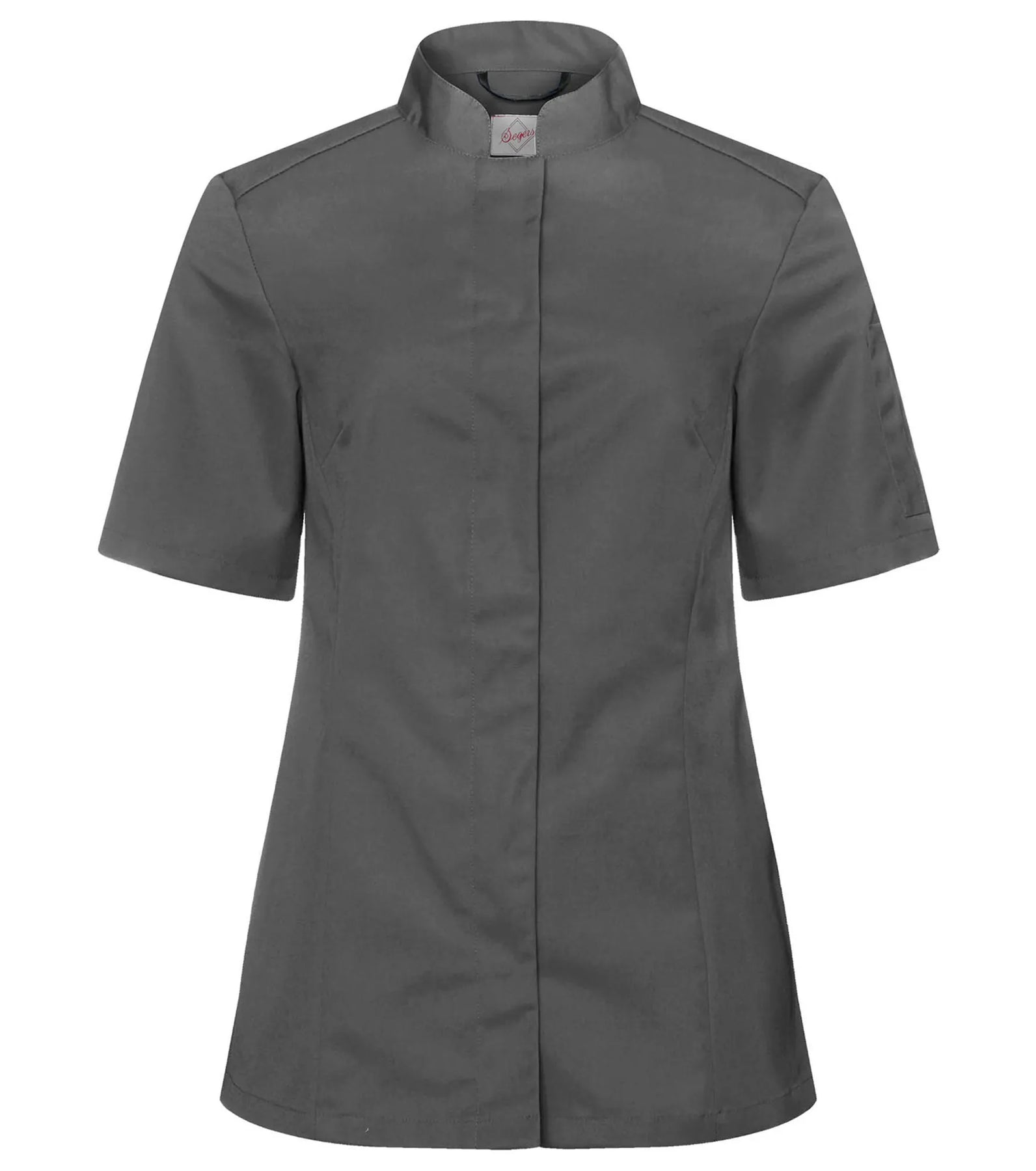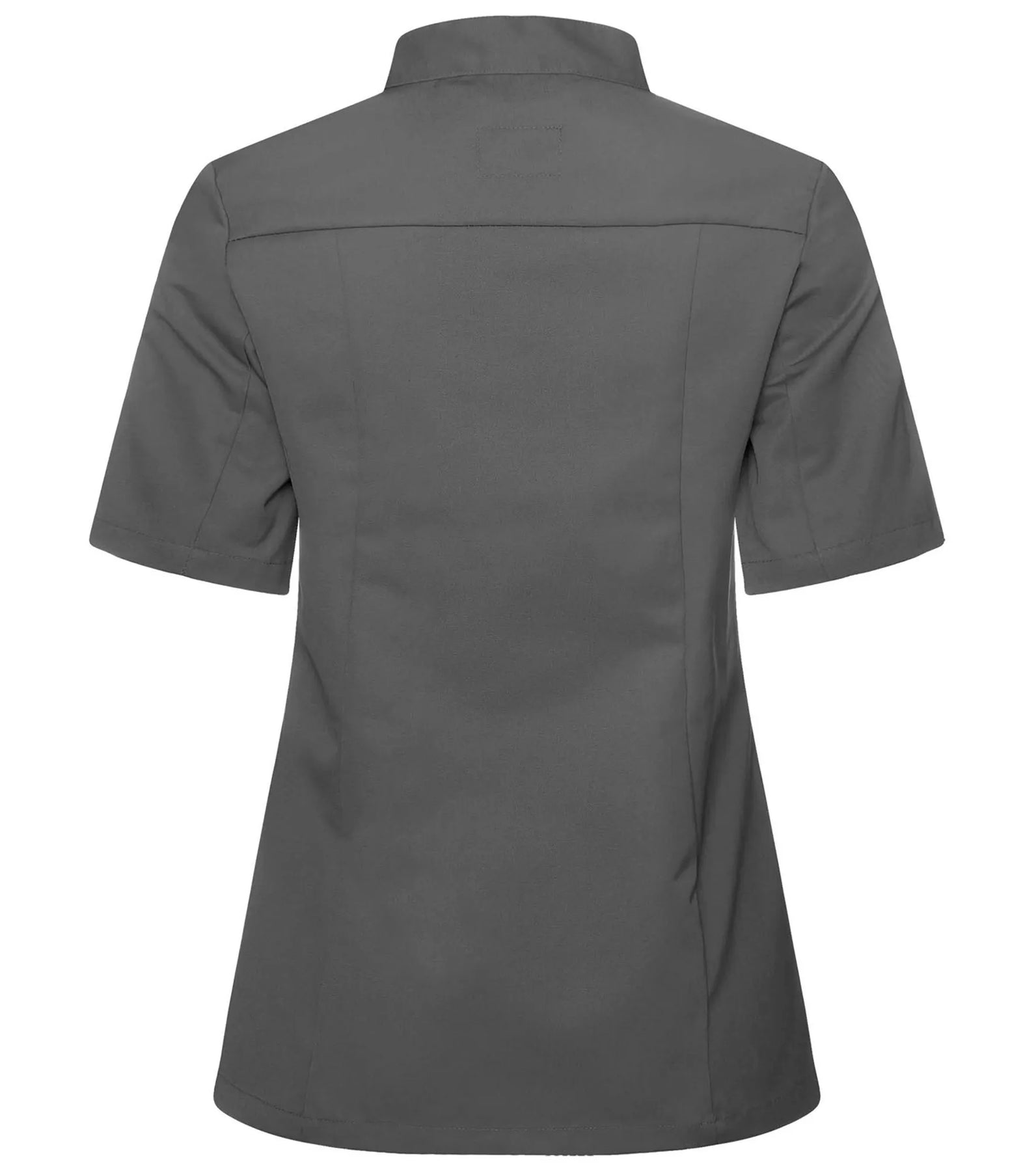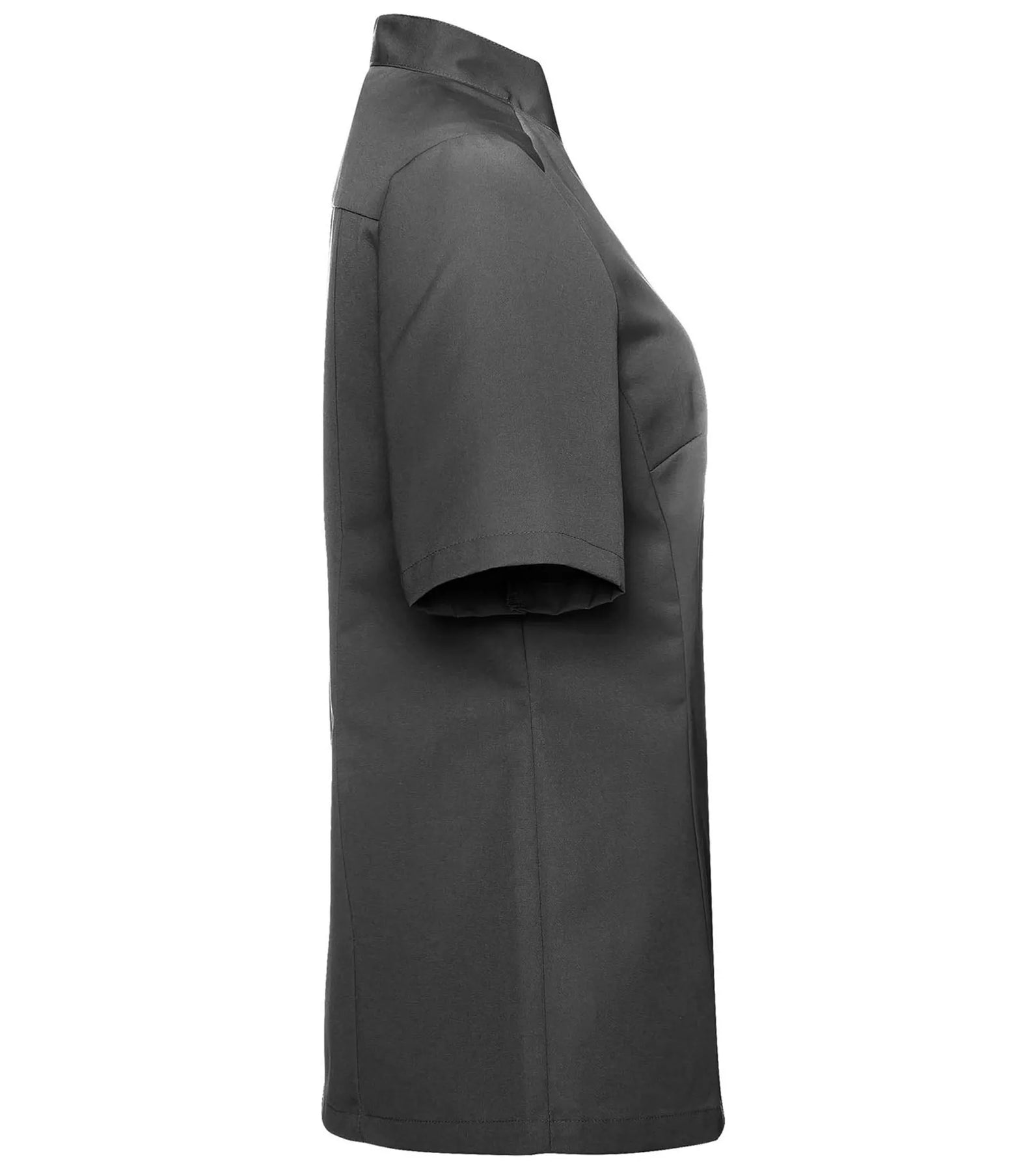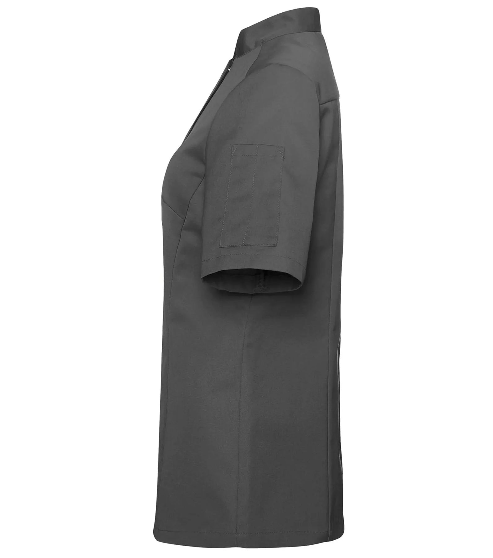 Modern women’s chef shirt with short sleeves and a slightly slimmer fit