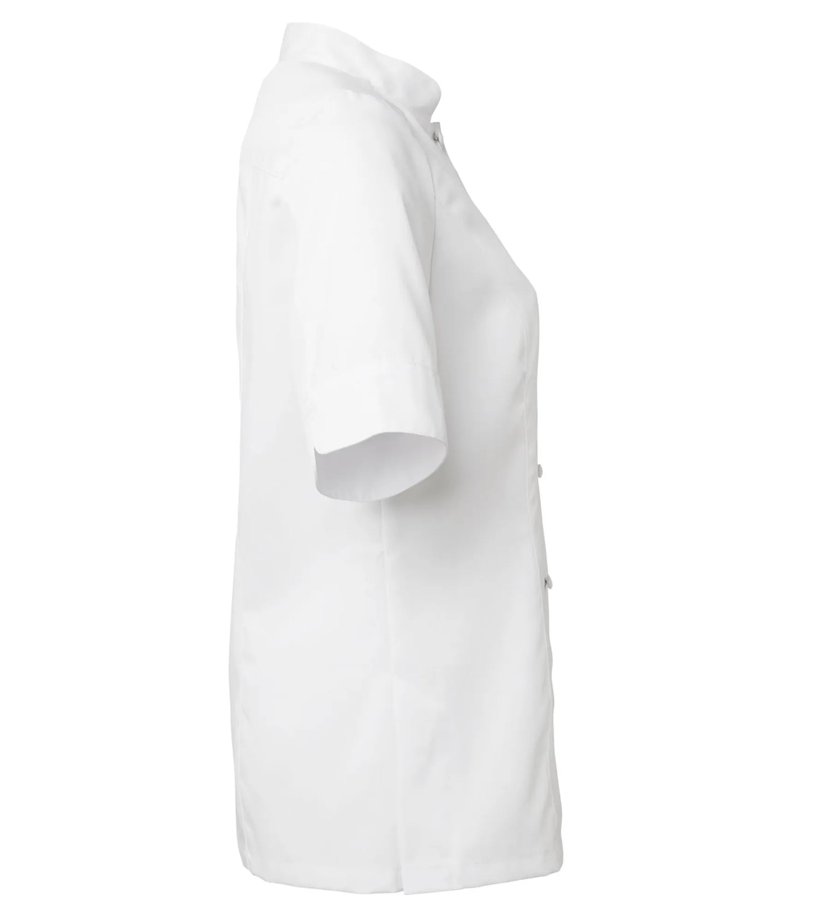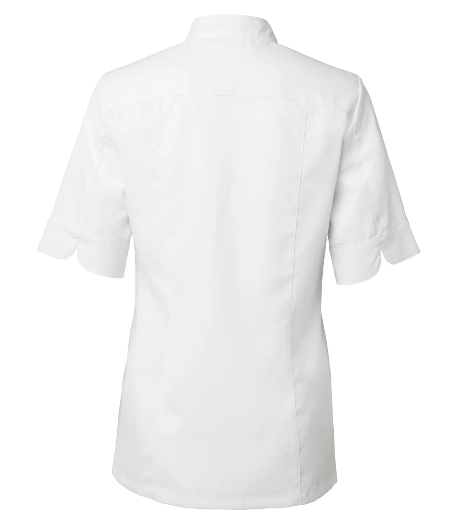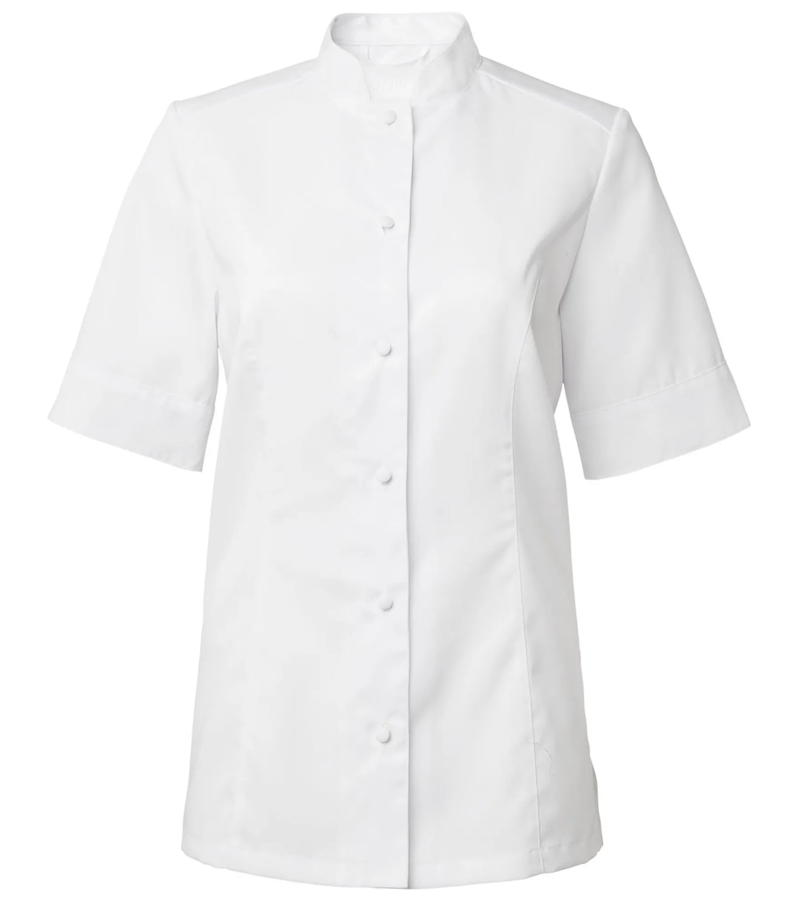 A women’s chef shirt with short sleeves and a slightly slimmer fit