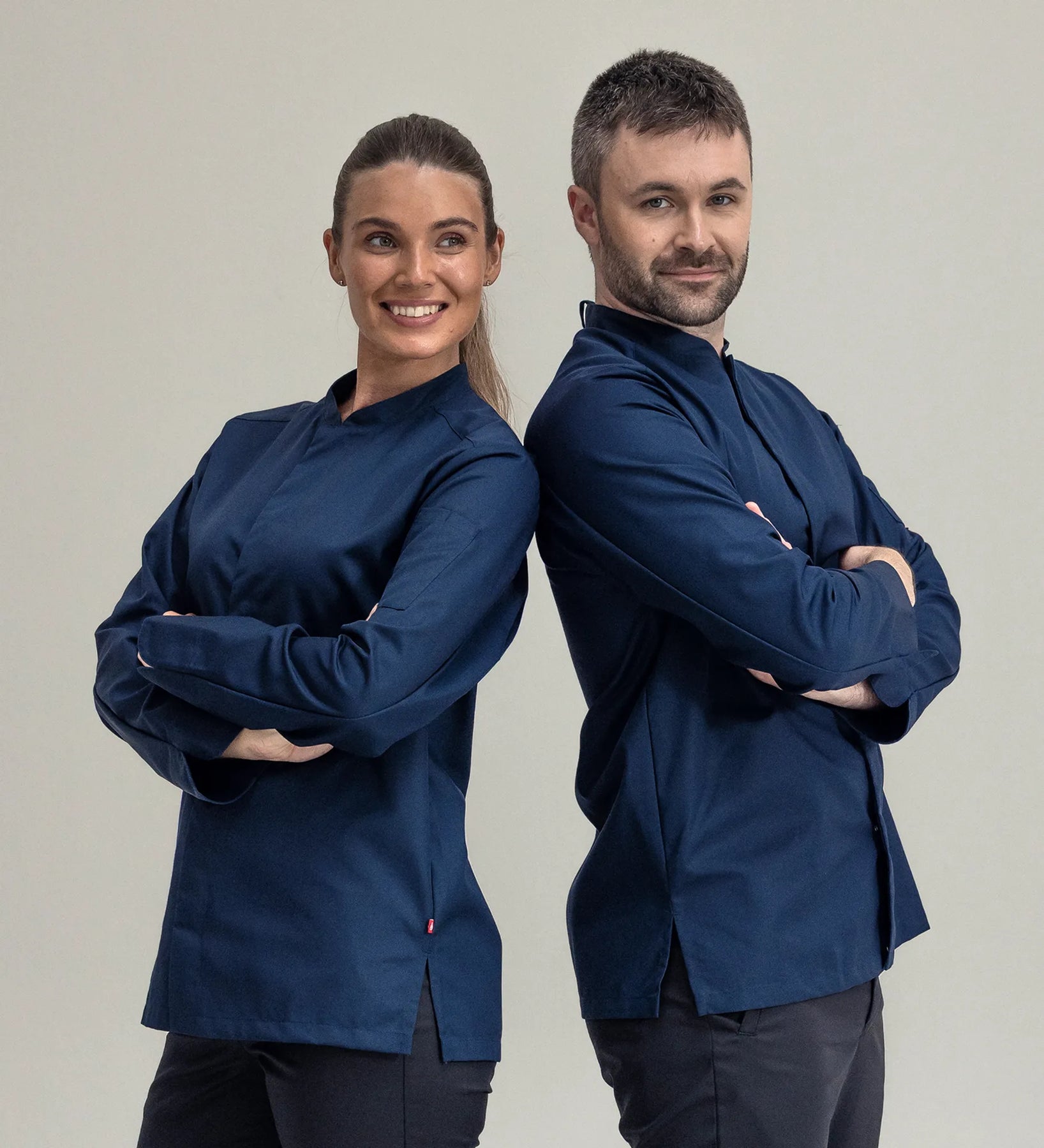 Onze nieuwe koksjas met lange mouwen in een slimme uniseks pasvorm, ontworpen voor de chefs van de toekomst.